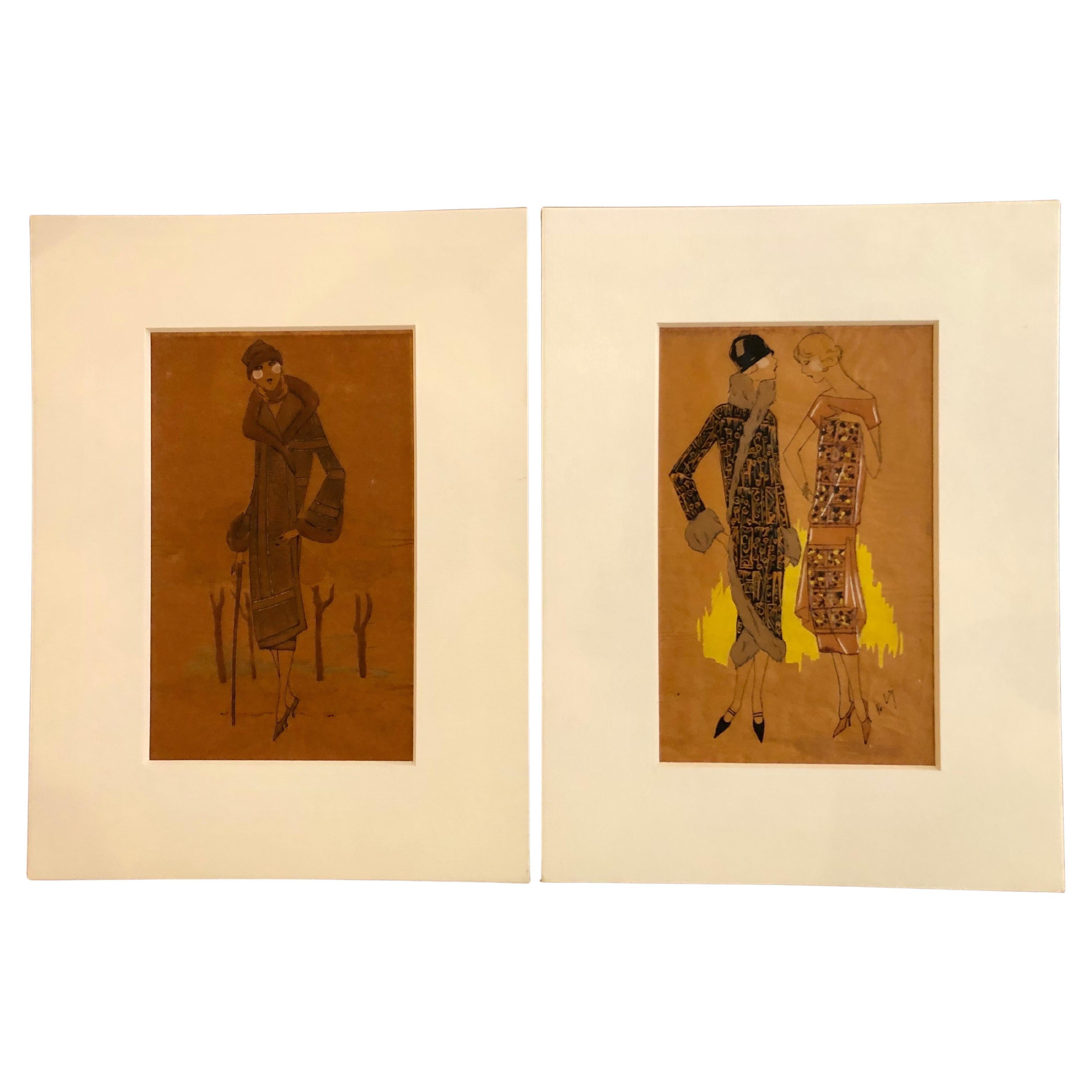 1930er Französisch Moderne Vintage Handbemalte Wanddekorationen