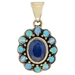FLORA-Anhänger, Opalit mit himmelblauem Topas & 14k Gold
