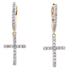 Old Dangle Ohrringe in 14K Gelbgold mit natürlichen Diamanten Einstellungen und Falten Haken Hand - im späten 19. Jahrhundert Moskau, russischen Zarenreich gemacht. Beide zeigen etw...