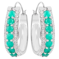 Diese Ohrringe sind einfach wunderschön! Jeder Ohrring hat einen 8 x 6 mm großen äthiopischen Feueropal im Ovalschliff. Insgesamt sind es 2.42 Karat. Sie sind von grünen Tsavorit-...
