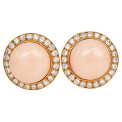 Edler Nachlass Andreoli Diamant 18K Weißgold und Koralle Klee Ohrringe 20. Jahrhundert Andreolis hervorragende Juwelen haben eine anspruchsvolle weltweite Kundschaft angezogen, zu de...