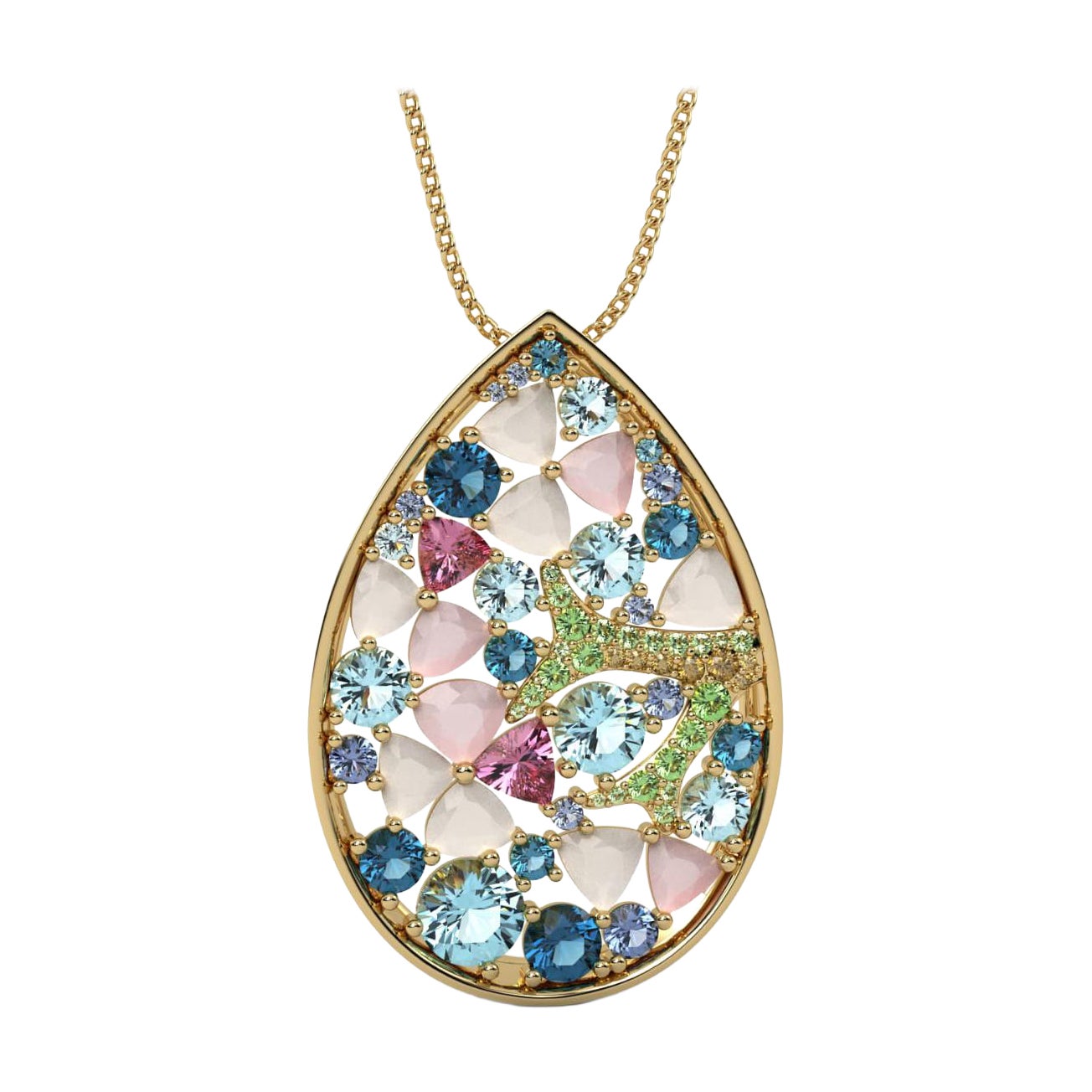 FLORA-Anhänger, Opalit mit himmelblauem Topas & 14k Gold
