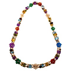 Neu 2,58 Karat Doppelstrang Multi-Edelstein-Anhänger Halskette 18 Zoll