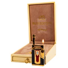 Elegantes und ikonisches Vintage-Feuerzeug von Cartier aus reichem rotem Lack mit schönen goldfarbenen Details. Das Feuerzeug ist in einem sehr guten Zustand und wurde in der Vergan...