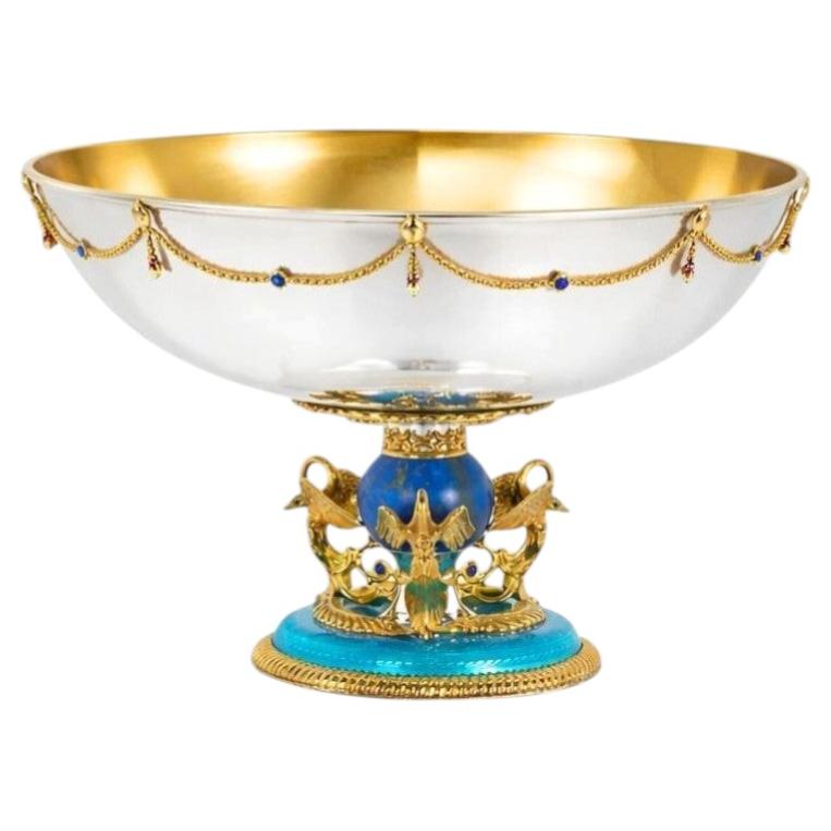 Schwanenhimmel Monumentaler kaiserlicher Stil Silber, Lapislazuli und Emaille Garnituren Set