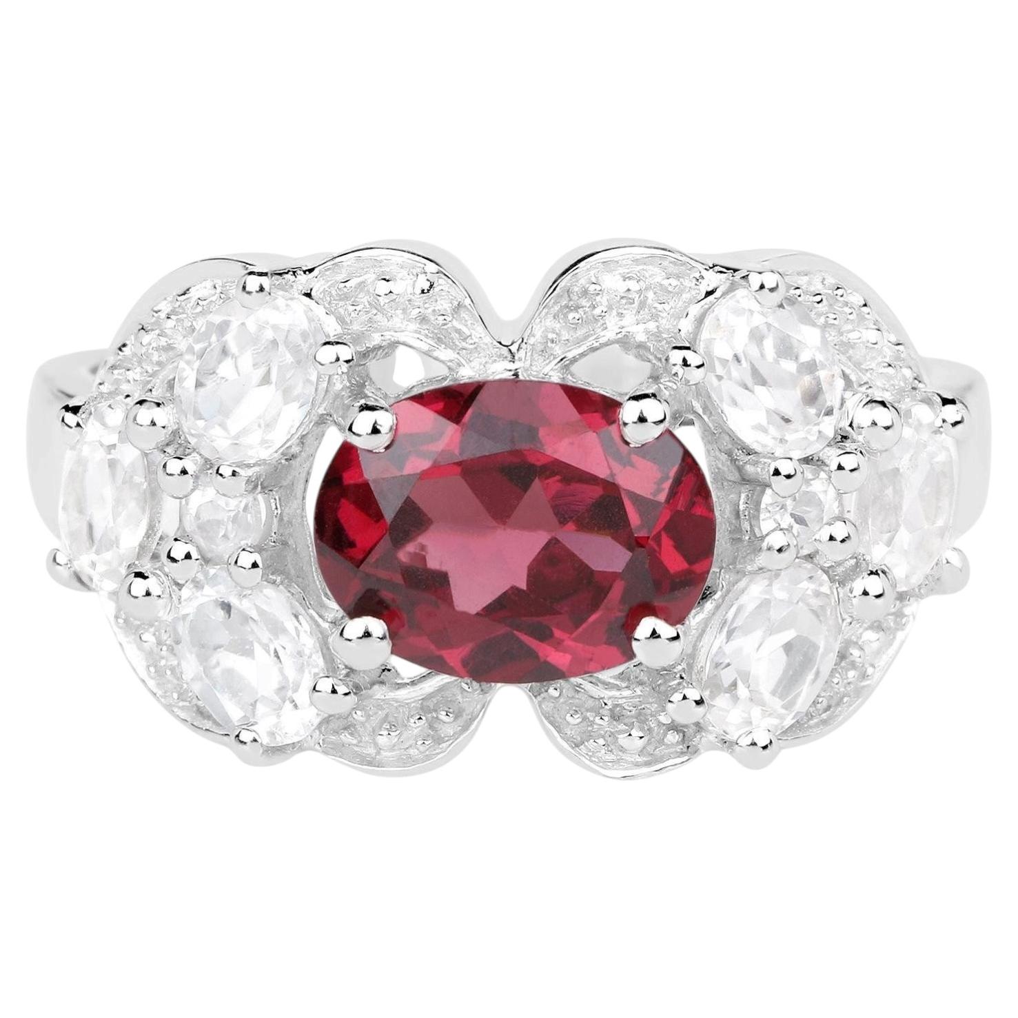 Marquiseschliff Roter Granat Ring Weißer Topas Halo 2,07 Karat insgesamt