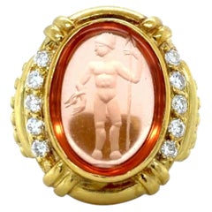 Diese Ringe, die historisch auch als "Siegelringe" bezeichnet werden können, sind Jahrtausende alt und wurden als eine Art Unterschrift verwendet. Was auch immer auf dem Ring eingraviert war - die Initialen eines Ehepaars, ein Familienwappen - identifizierte den Besitzer, wenn es in weiches Wachs eingedrückt wurde, für die Beglaubigung von Dokumenten und mehr. Im Mittelalter waren Siegelringe Symbole der Macht und des Prestiges und übliche Accessoires des Adels. Später, im 19. Jahrhundert, wurden Siegelringe aus Gold mit Edelsteinen und Halbedelsteinen wie Rubinen und Diamanten verziert, so dass sie ein kunstvolleres Aussehen erhielten als zuvor.