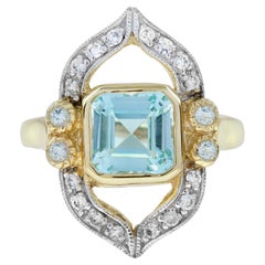 Diamant, Topas, Blauer Topas, 14-Karat-Gold, Gelbgold