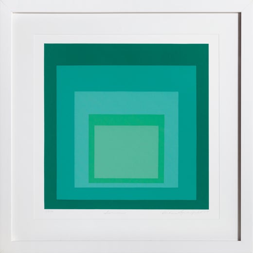 Zinkel war zutiefst auf Farben fixiert, spielte verschiedene Farbtöne gegeneinander aus, um eine Vielzahl dramatischer Effekte zu erzielen. Ein Siebdruck aus dem Jahr 1994 mit dem Titel Burgundy Blue ist einer von mehreren, die direkt von dem in Deutschland geborenen Farbtheoretiker - und Bauhaus Pädagogen - Josef Albersinspiriert sind. Die legendäre "Hommage an das Quadrat" ist eine 1950 begonnene Serie von Gemälden, die die Wahrnehmungsmutationen untersuchen, die entstehen, wenn Farben in verschachtelten Quadraten nebeneinander gestellt werden.