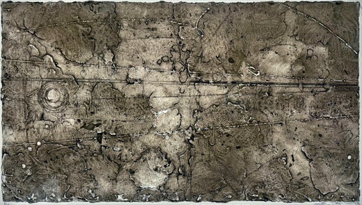 Elise Wagner, Malerin, Grafikerin und Lehrerin, hat kürzlich das Stipendium der Pollock-Krasner-Stiftung erhalten. Elise stammt ursprünglich aus Jersey City, New Jersey, und zog vor über 30 Jahren nach Portland, Oregon. Ihre anfängliche Begeisterung für die Geologie und die majestätische Schönheit des pazifischen Nordwestens führte dazu, dass sie an der Portland State University einen Bachelor of Science erwarb. Sie studierte Geologie, Physik und Umweltbiologie mit der Absicht, diese in ihre Arbeit einfließen zu lassen. Elise erhielt außerdem ein Stipendium des Vermont Studio Center. Der pazifische Nordwesten ist ihre Heimat und hat ihr lebenslanges kreatives Streben nach einer Verbindung von Kunst und Wissenschaft gefördert. Statement des Künstlers: Meine Arbeit wird von neuen Entwicklungen in der Astronomie, der Physik und der Umwelt inspiriert und entwickelt sich mit ihnen weiter. Ich gehe an jedes Gemälde heran, als würde ich eine Karte zu einem unbekannten Ziel anlegen, und es hat mich schon immer fasziniert, wie wir unseren Ortssinn durch Kartografie und Architektur definieren. Mein Ziel ist es, durch den Einsatz von Farbe, Linie, Textur und Licht visuell zu übersetzen." Über den Prozess: Enkaustik-Collagraphie-"Monodrucke" können mit verschiedenen Markierungstechniken erstellt werden, wie z. B. Kaltnadelradierung direkt in die Platte und durch die Wachsstruktur hindurch, wodurch es möglich ist, die Platte immer wieder zu verwenden (bis zu 20 Abzüge) und die Farben für kleine Auflagen zu variieren. Die Platte kann auch verbessert, verändert oder völlig neu erstellt werden, nachdem ein einziger Abdruck von ihr gemacht wurde; dies würde als "Monotypie" (ein Typ) bezeichnet. Typische Werkzeuge für die Herstellung der Enkaustik-Collagraphieplatte sind keramische Ritz- und Schabewerkzeuge. Beheizte Werkzeuge wie ein Hefteisen und ein beheizter Wachsschreiber werden empfohlen. Bei dieser Methode ist das Schmelzen des Wachses optional und nicht notwendig.