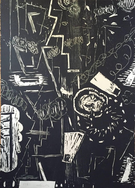 Ohne Titel, expressionistischer Holzschnitt ohne Titel, aus dem Portfolio Art Against AIDS