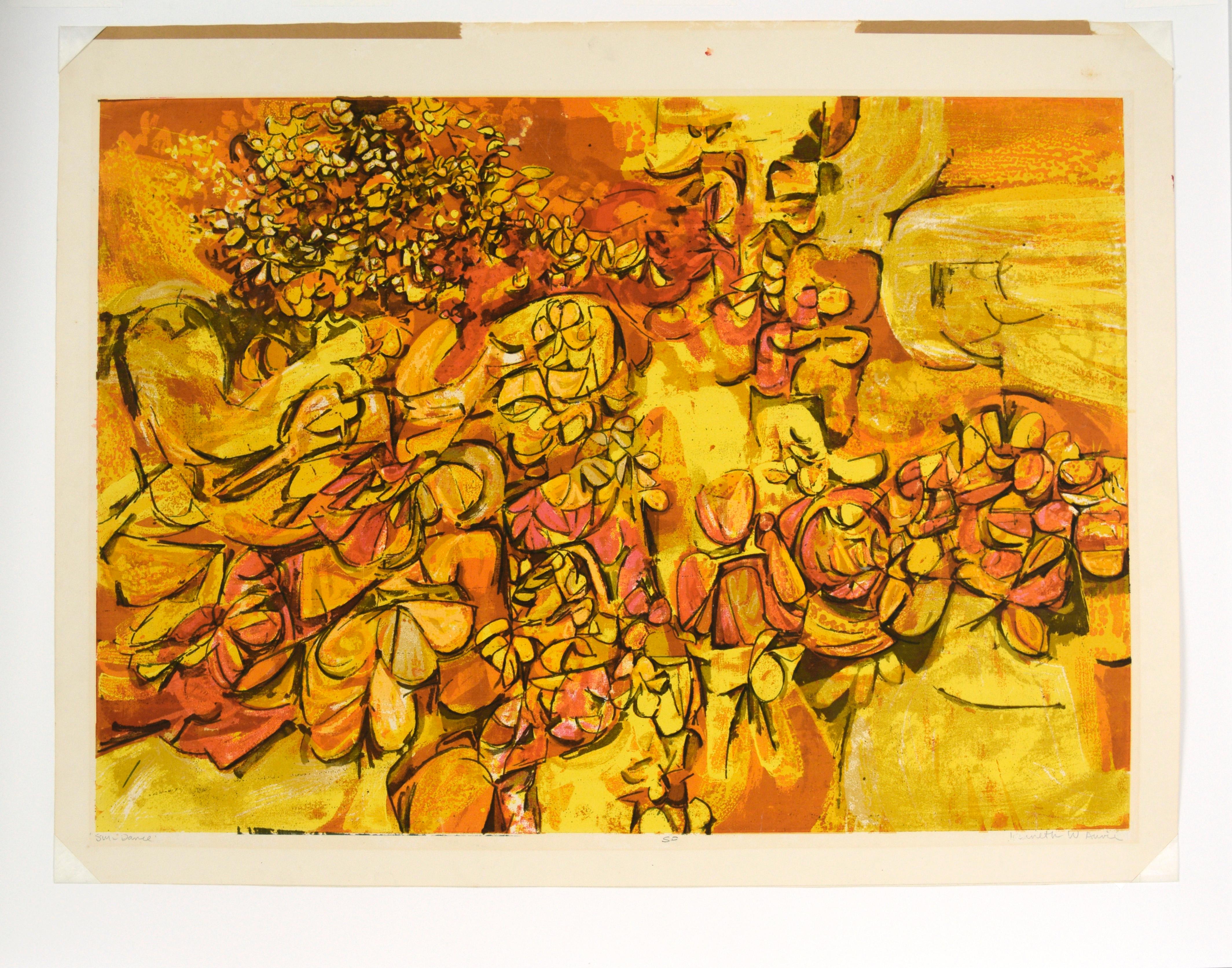 Kenneth W. Auvil"Sun Dance" Vibrant Mid Century Serigraphc. 1959