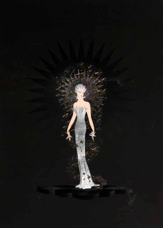 Erté, Romain de Tirtoff, (1892-1990) war ein in Russland geborener französischer Künstler und Designer, der für seine eleganten Modedesigns und seine Kunstwerke gleichermaßen berühmt ist, die beide die Zeit des Art déco widerspiegeln, in der er arbeitete. Der vielseitig begabte Erté wurde in Sankt Petersburg als Sohn einer angesehenen Familie geboren, deren Wurzeln bis ins Jahr 1548 zurückreichen. Nach seinem Umzug nach Paris erhielt er seinen ersten großen Vertrag mit der Zeitschrift Harper's Bazaar und begann damit eine glänzende Karriere, die auch das Entwerfen von Kostümen und Bühnenbildern umfasste. Zwischen 1915 und 1937 entwarf Erte über 200 Titelseiten für Harper's Bazaar, und seine Illustrationen erschienen auch in Publikationen wie Illustrated London News, Cosmopolitan, Ladies' Home Journal und Vogue. Erté blühte auf und war in einer Reihe von Bereichen bekannt, darunter Mode, Schmuck, Grafik, Kostüm- und Bühnenbildgestaltung für Film, Theater und Oper sowie Innendekoration.