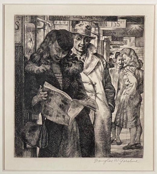 Gorsline, Douglas (Amerikaner, 1913-1985). IRT INTERLUDE. Kupferstich, 1940. 7 7/8 x 5 1/8 Zoll (Platte), 9 1/2 x 8 5/8 Zoll (Blatt). Mit Bleistift signiert, betitelt und datiert. Au...