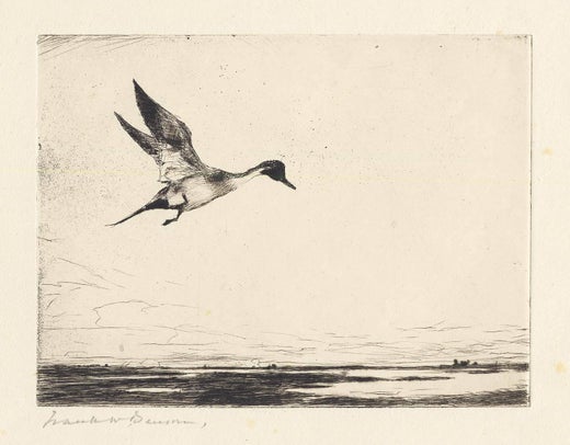 Der in Salem, Massachusetts, geborene amerikanische Impressionist Frank Benson studierte am Museum of Fine Arts in Boston bei Otto Grundmann und an der Academie Julian bei Gustave Boulanger und Jules Lefebvre. Benson war Gründungsmitglied der American Academy of Arts and Letters, der Guild of Boston Artists und der "Ten American Painters", einer angesehenen Gruppe von Frühimpressionisten. Im Jahr 1900 erwarb Benson eine Farm und ein Studio auf North Haven Island vor der Küste von Maine. Dort wurde sein Stil zunehmend impressionistisch. Benson gilt als einer der herausragenden Naturfotografen des 20. Jahrhunderts. Benson war Mitglied des Boston Art Club, der National Academy of Design, der Society of American Artists und der Guild of Boston Artists. Er stellte auf der World's Columbian Exposition in Chicago, der Exposition Universelle in Paris, der Lousiana Purchase Exposition in St. Louis und der Panama Pacific Exhibition in San Francisco aus sowie im Art Institute of Chicago, der Corcoran Gallery, dem Carnegie Institute, der International und der Pennsylvania Academy of Fine Arts. Bensons Werke befinden sich in zahlreichen öffentlichen und privaten Sammlungen, darunter die National Gallery of Art, das Smithsonian American Art Museum, das Museum of Fine Arts, das Worcester Art Museum und das Metropolitan Museum of Art.