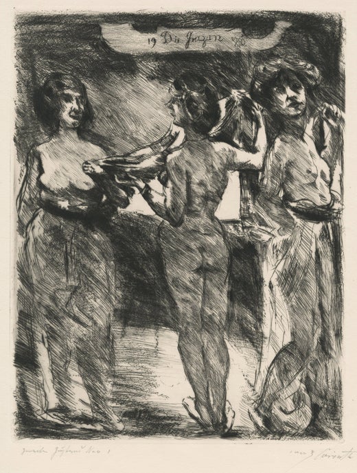 Tod und Jungling ist eine Original-Lithographie von Lovis Corinth aus dem Jahr 1921, handsigniert und nummeriert Nr. 33/95.