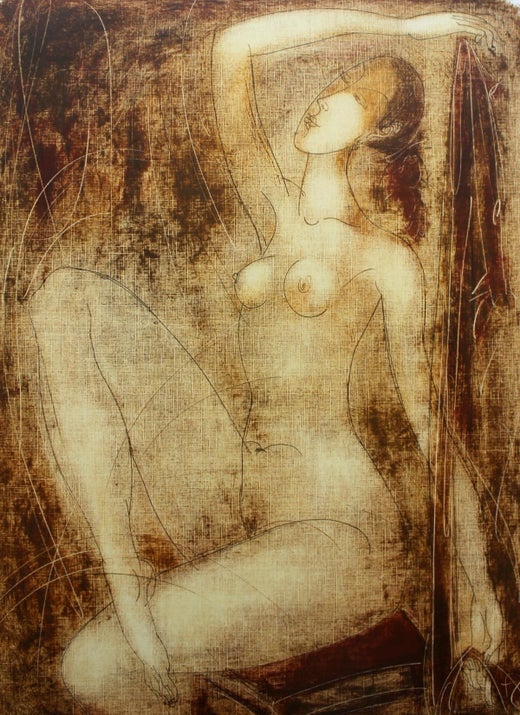 Siergiej TimochowAkt mit Saxophon. Contemporary Figurative Monotype Print, europäischer Künstler2005