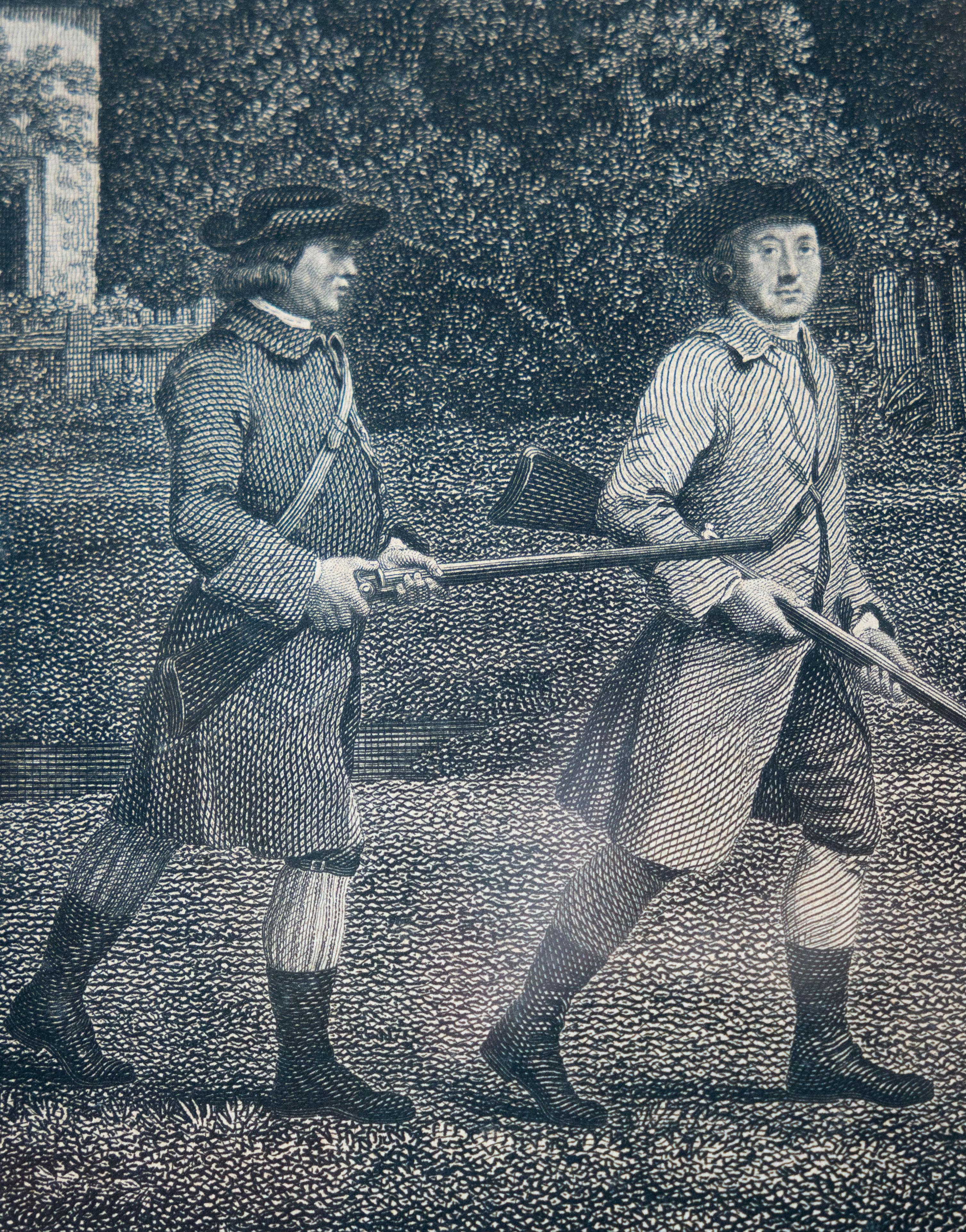 Schießen - Tafel II", Stich aus George Stubbs berühmter Serie von vier Schießgravuren.