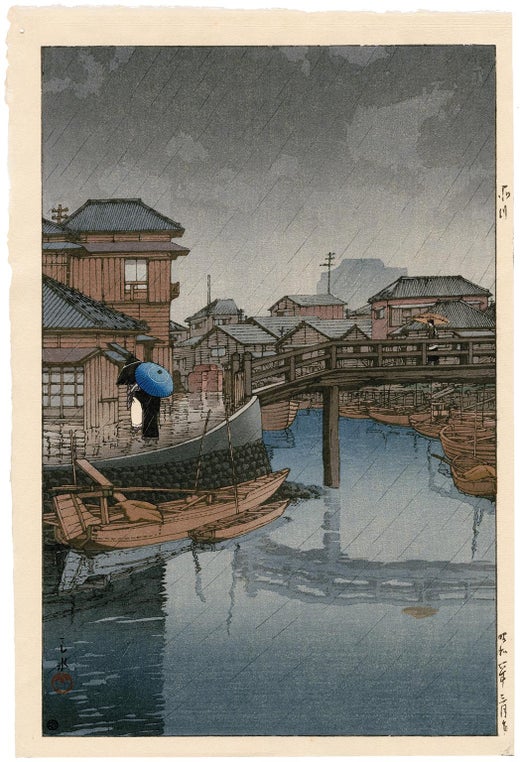'Rain at Shinagawa, Ryoshimachi' — Showa-era Woodblock Print