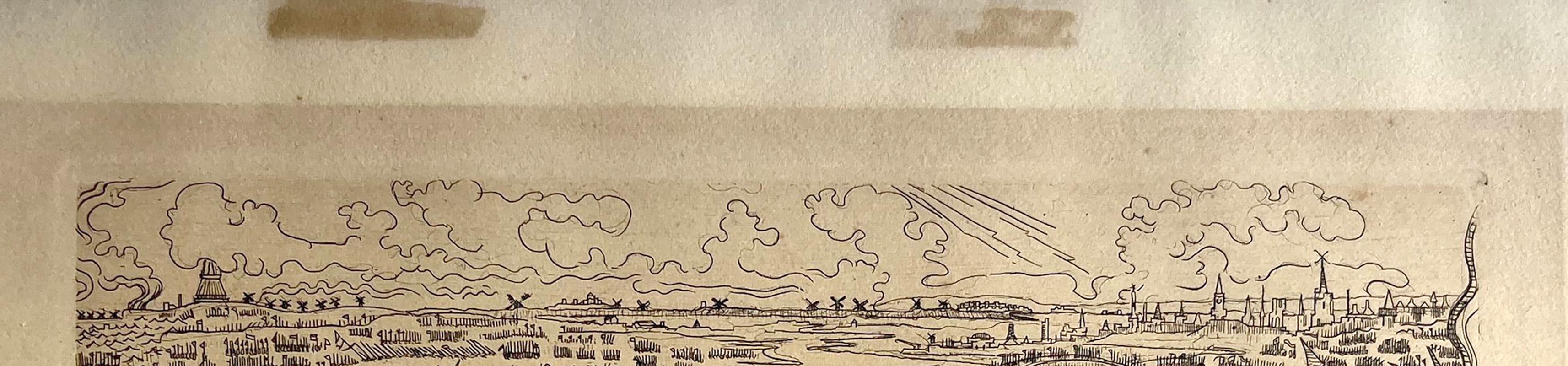 Leicht stockfleckig auf dem Papier. Zwei Verfärbungen an der oberen Kante (siehe Fotos), die auf das Vorhandensein von Klebeband zurückzuführen sind. Das Stück wurde auf eine neue säurefreie Schaumstoffunterlage gelegt. Rahmen hat Verlust der Vergoldung, kommt wie es ist.