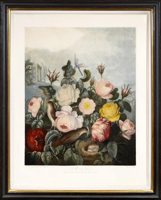 Robert John Thornton (1765-1832) fühlte sich schon früh zur Naturgeschichte hingezogen und legte schon als Junge einen eigenen botanischen Garten und eine Voliere an. Er schloss sein Medizinstudium in Cambridge ab und ließ sich als Arzt in London nieder. 1797 erbte er sein Familienvermögen, was Thornton die Möglichkeit gab, sich seinem Lebensziel zu widmen, ein umfangreiches wissenschaftliches Werk zu schaffen, das dem großen klassischen schwedischen Naturforscher Carolus von Linnaeus (1707-1778) gewidmet ist, der ein System zur Klassifizierung von Pflanzen und Tieren entwickelte und als Vater der Taxonomie bekannt ist. Thorntons Ziel war es, alle bisherigen Publikationen in Europa zu übertreffen, was den Umfang des Projekts, die Qualität der Illustrationen und des Papiers sowie die Schönheit der Landschaften betrifft, die als Hintergrund für die Pflanzen dargestellt wurden. Thornton war der erste, der Landschaftshintergründe mit seinen botanischen Motiven verband. Er wollte, dass die Publikation sowohl von akademischer Bedeutung als auch von künstlerischer Schönheit ist. Er widmete sein Werk und die anschließende Veröffentlichung "The Temple of Flora; or Garden of Nature Picturesque Botanical Plates of the New Illustration of the Sexual System of Linnaeus" Königin Charlotte. Thornton eröffnete eine Kunstgalerie, um die Gemälde auszustellen, nach denen die Drucke hergestellt wurden, und um Abonnements für die kommenden Bücher zu verkaufen. Königin Charlotte, der Prinzregent und der Kaiser von Russland erhielten Exemplare des Buches. Obwohl die Publikation für Thornton finanziell nicht erfolgreich war, führte die Stilisierung der illustrierten Blumen und ihre historischen, allegorischen und phantasievollen Hintergründe dazu, dass The Temple of Flora als eines der größten botanischen Bücher aller Zeiten gilt.
