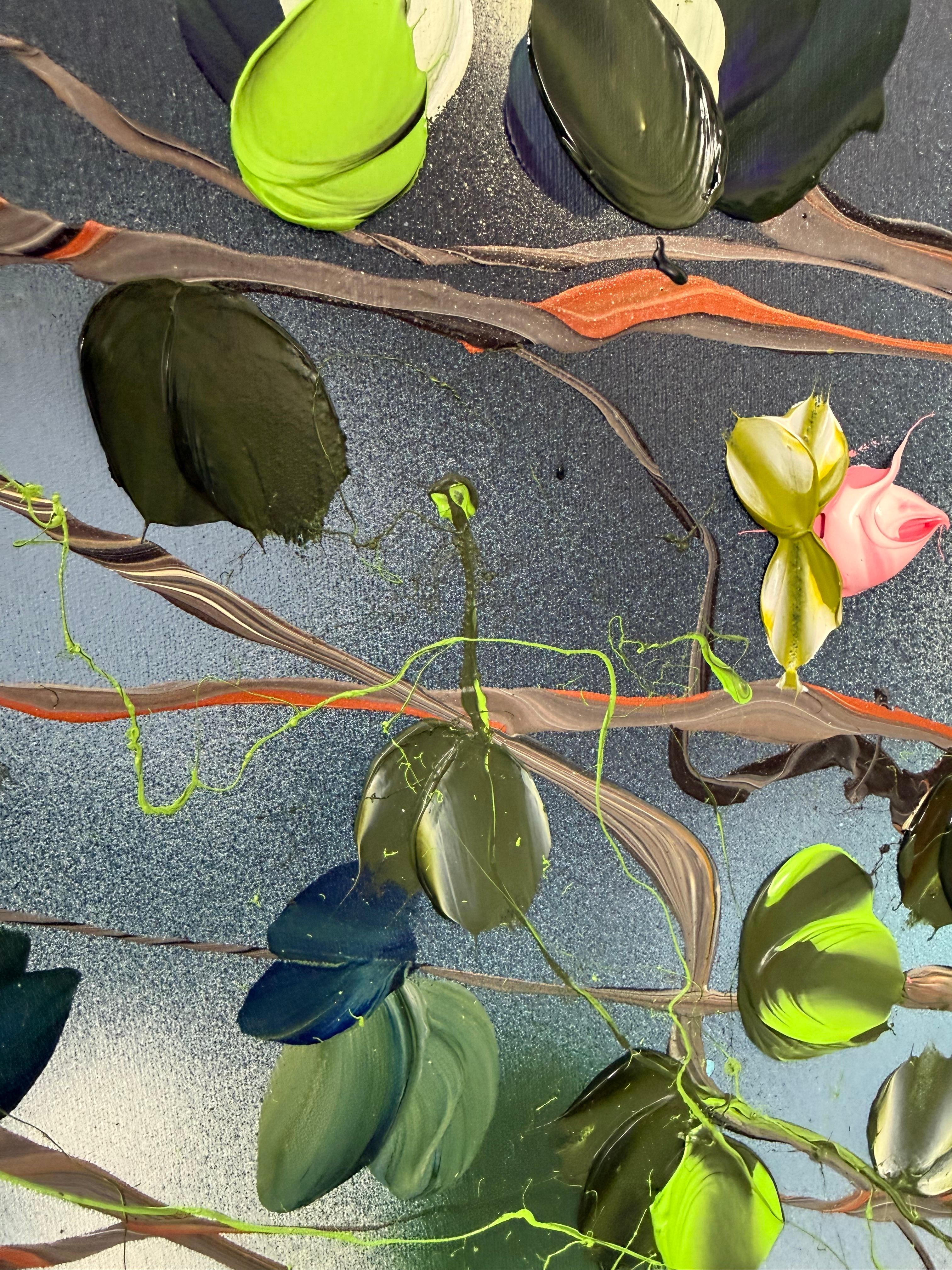 Großes abstraktes, expressionistisches, geblümtes Acrylgemälde auf Leinwand „Blumen exploration“