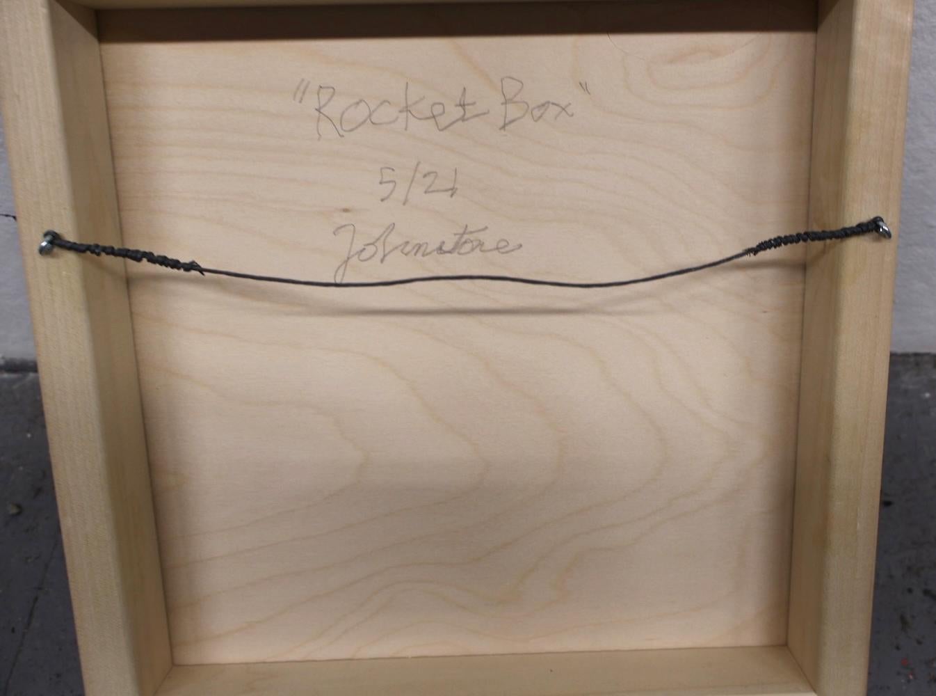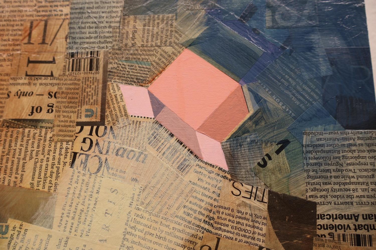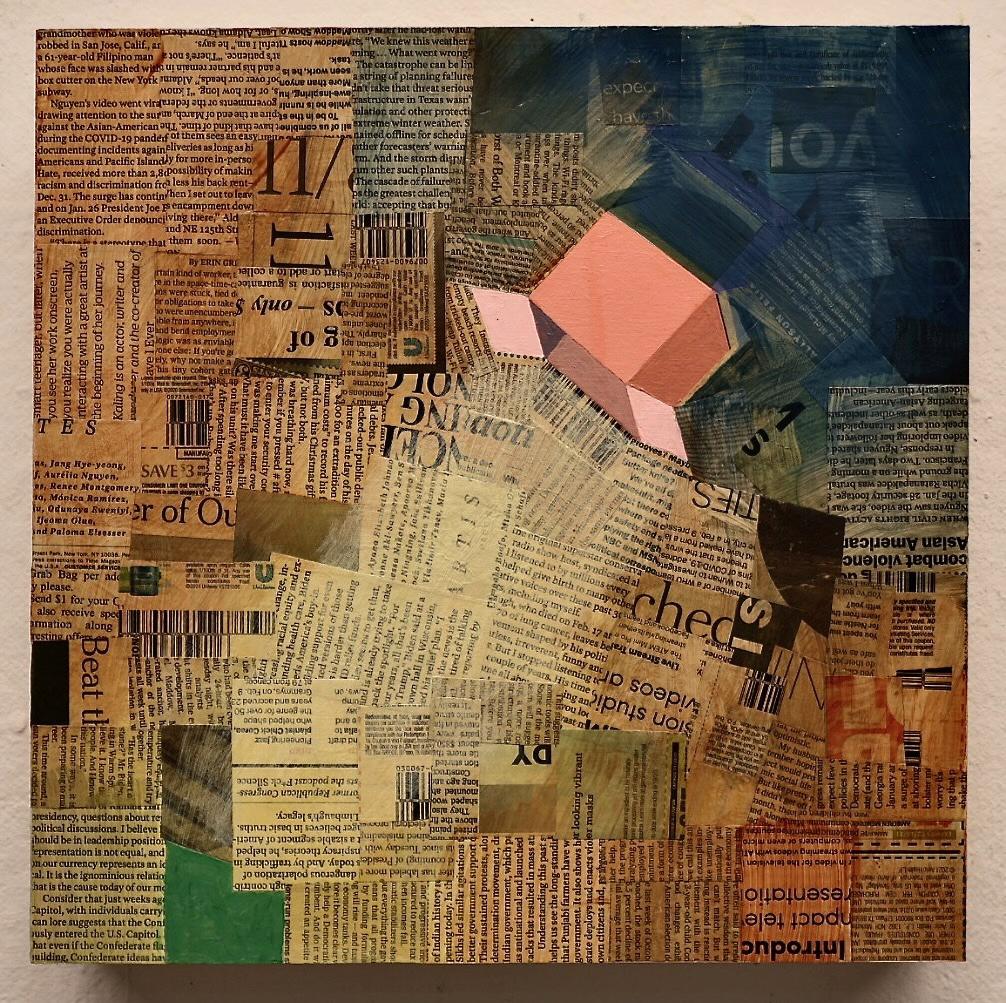 Anne Johnstone"Rocket Box", Abstrakt, Zeitung, Text, Collage, Acryl, Gemälde in Mischtechnik2021
