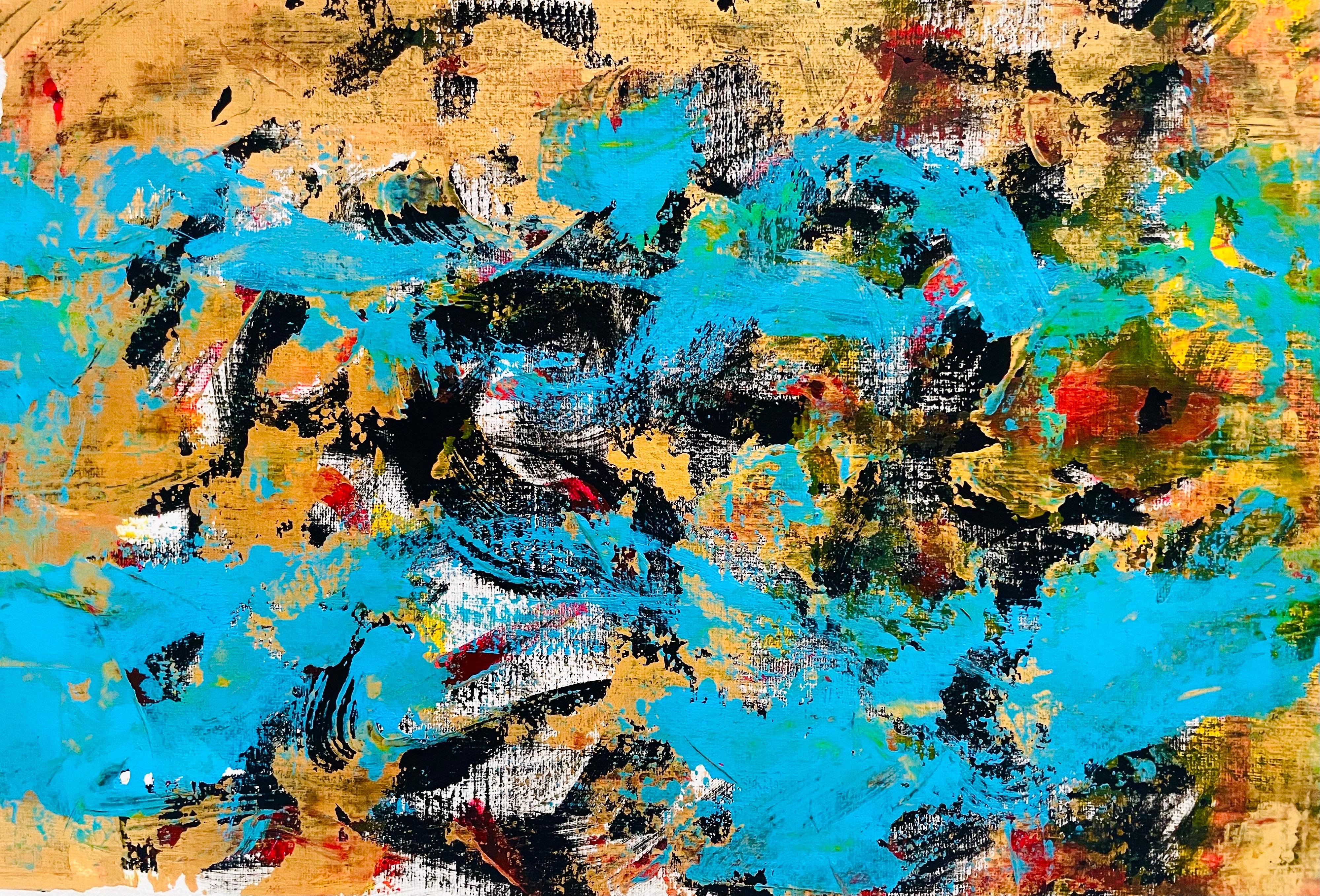 "My Blood Is All I Have" ist ein sehr strukturiertes abstraktes Gemälde. Ich habe Acryl auf Papier als MATERIAL verwendet, und das Jahr dieses Kunstwerks ist 2023.