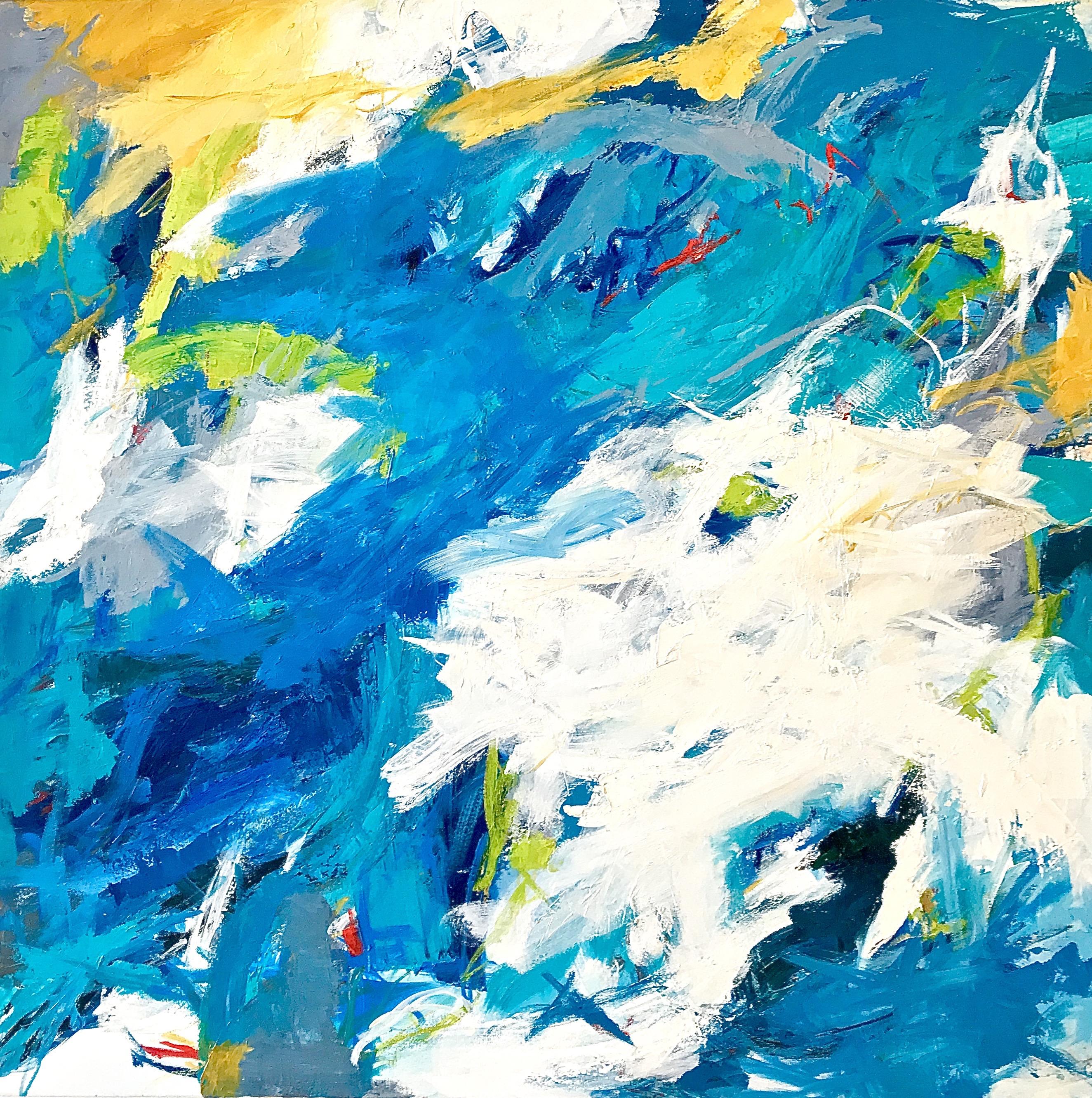 Cathy Bennigson""Regenstromwassere" Blau/Grün/Weiß/Blau/Weiß, farbenfrohe abstrakte expressionistische Abstraktion2019