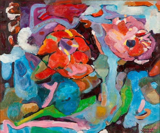 "Fest Symphony" ist ein modernes, abstraktes Ölgemälde von Maestro Dimitar Mitov-Komshin