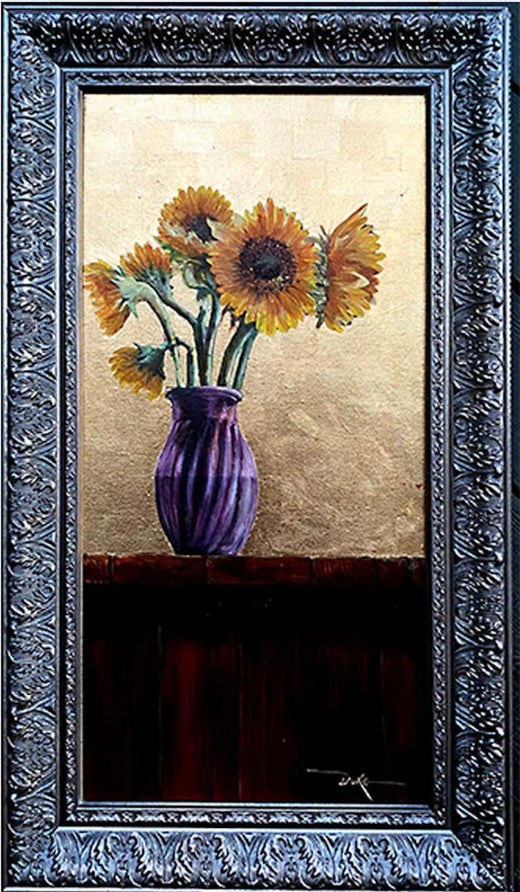 Dies ist ein einzigartiges Originalgemälde in Acryl und Blattgold von Duke Windsor, einem Künstler aus San Diego, der Stillleben malt. Seine Abmessungen sind 48 "x36". Es ist ungerah...