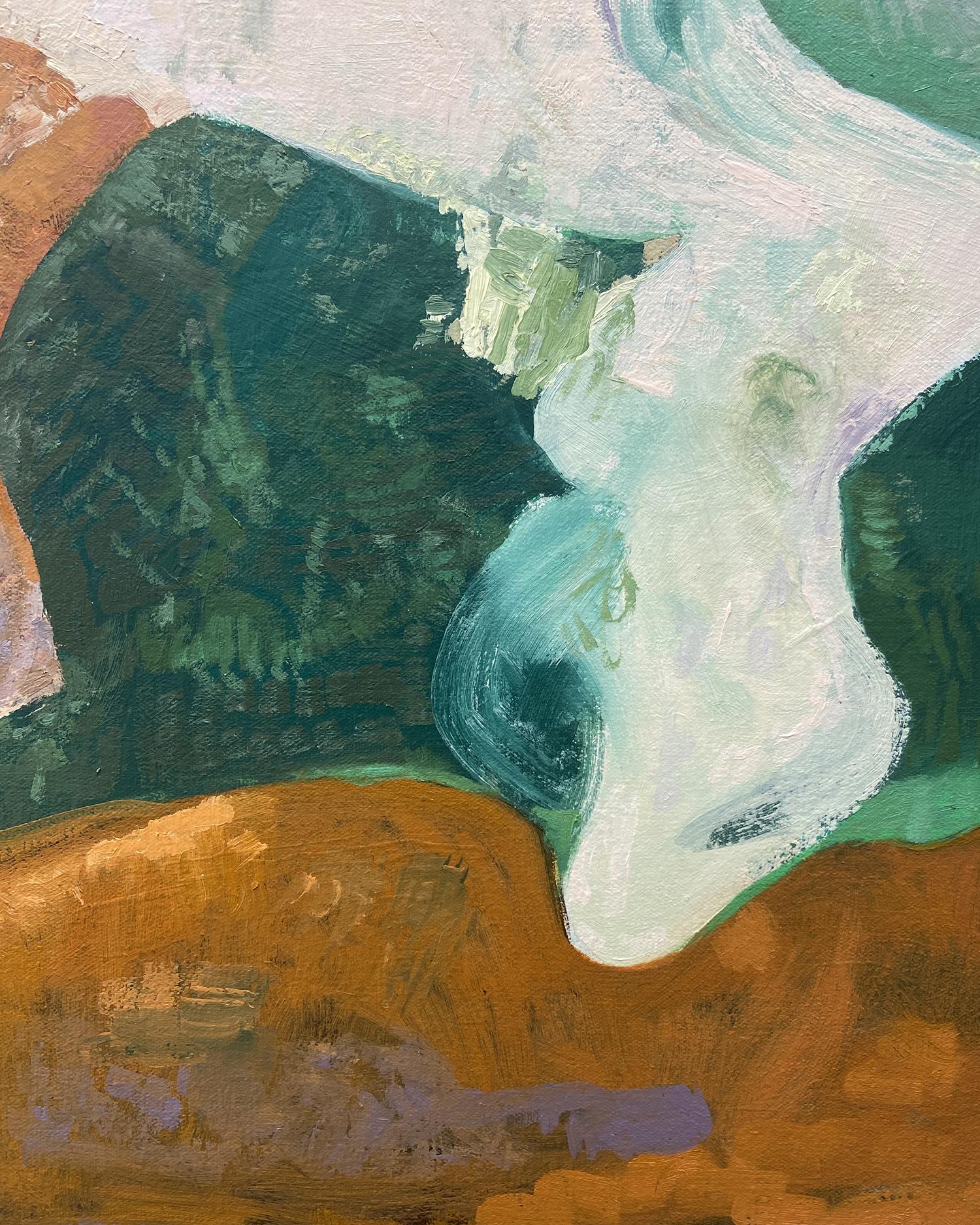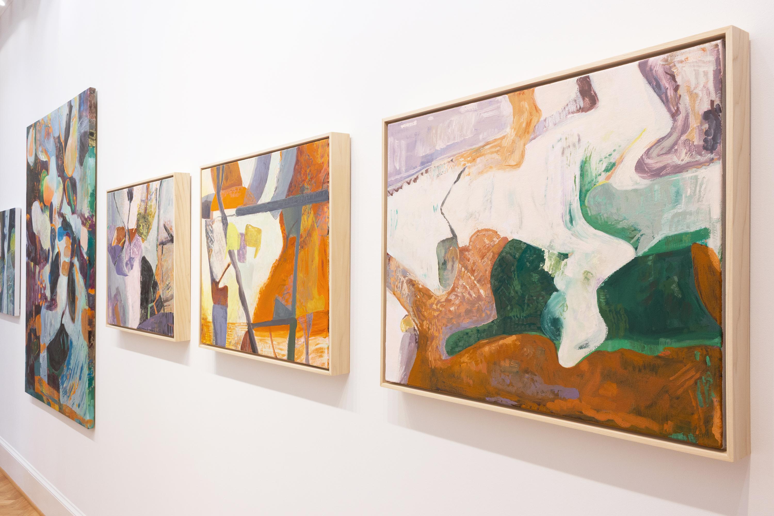 Die irisch-amerikanische Künstlerin Eilis Crean hat mit "Meanderspace" eine Serie neuer abstrakter Gemälde geschaffen, die von ihrer derzeitigen Umgebung in Georgia, von Erinnerungen an das ländliche und küstennahe Irland sowie vom Zusammenspiel von Natur und menschlicher Migration beeinflusst sind. Diese abstrakten Werke sind erfundene Landschaften, die sowohl auf wilde als auch auf kultivierte Räume anspielen, wie z. B. einen Hinterhof, einen Pfad an einer Klippe, eine Landzunge im Nordatlantik oder halbtropische Unterwuchs- und Baumkronen. Der Malprozess beinhaltet eine schichtweise gebrochene Markierung, um eine vibrierende Farbe zu erzeugen, die den Betrachter vom Erkennen zum Empfinden bringt. "Meine Absicht ist es, beobachtete und vorgestellte Formen zu entmaterialisieren und neu zu gestalten, um hybride Umgebungen zu schaffen, die zyklische und metaphorische Reisen hervorrufen", sagt Eilis.
