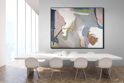 Viele der verbleibenden großformatigen Werke von Rees sind nicht aufgespannt und tragen seine Signatur direkt auf der Leinwand. Sammler haben die Möglichkeit, das Werk vor dem Versand zu strecken oder es in einer Rolle zu erhalten, um die Transportkosten erheblich zu senken. Ungestreckte Werke können auch direkt an der Wand mit hochfesten doppelseitigen Klettverschlüssen angebracht werden, eine Präsentation, die Rees selbst oft bevorzugt hat, und sie können mit einem einfachen Rahmen bündig an der Wand angebracht werden, um ein klares zeitgenössisches Finish zu erzielen.