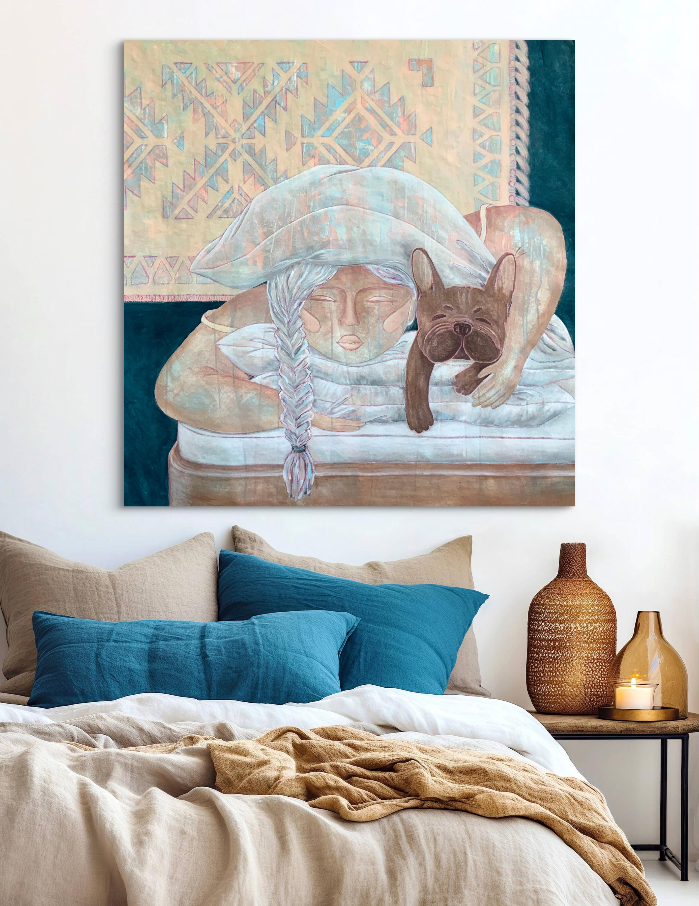 In der neuesten Folge der "The Joy Series: A Journey to Inner Happiness" taucht die Künstlerin mit dem Gemälde "Cocoon of Comfort" in das tröstliche Reich der Literatur ein.