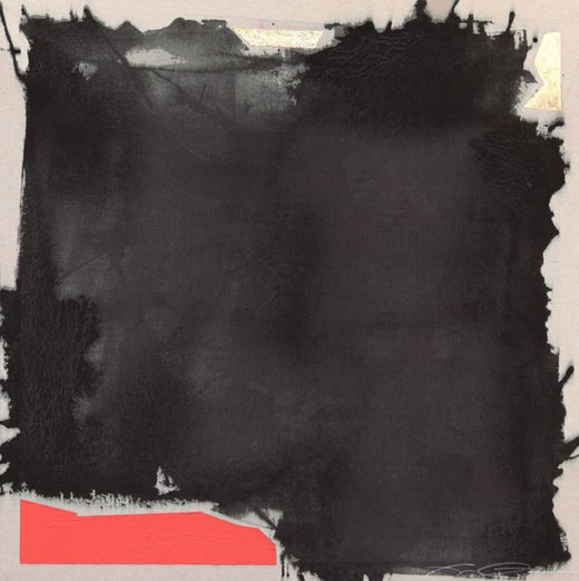 Concrete Sky I – Bold Meditatives Gemälde mit Blattgoldrotem Gemälde auf Leinwand
