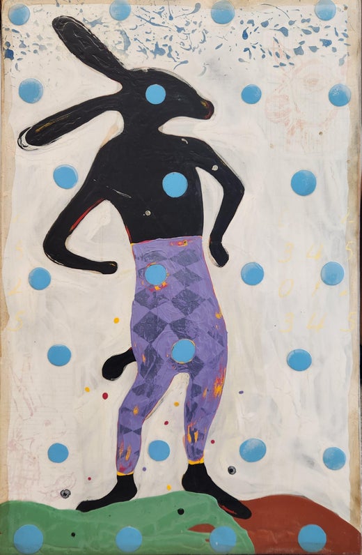 Nelsons Sujets sind ebenso verspielt wie eigenartig - seine strukturierten Gemälde, die Collagen, Ölfarbschichten und die Integration von Text enthalten, zeigen alles von Tieren und Blumen bis hin zu imaginären Mensch-Tier-Hybriden oder Alltagsgegenständen wie Schuhe und Fahrräder. Viele Gemälde sind mit bunten Polka-Dot-Mustern bevölkert, während seine Pop-Art-infizierten Stahlskulpturen fantastische Formen annehmen und sich auf die Muster- und Dekorationsbewegung stützen, die in Städten wie Los Angeles und New York in den frühen 1970er Jahren aufkam.