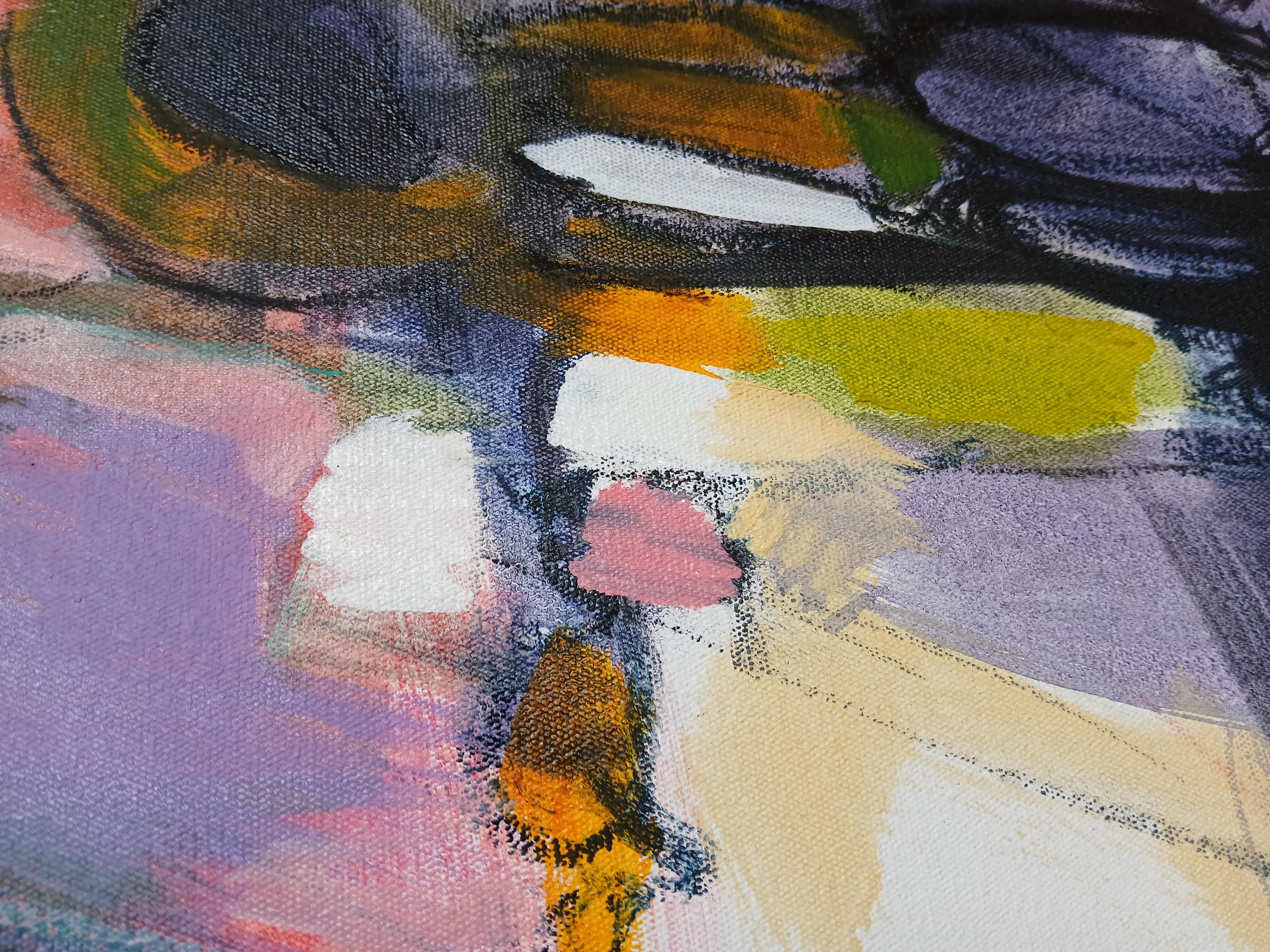 Martie de WetLarge Colourful Abstract Oil on Canvas Painting With Floral Tones2025