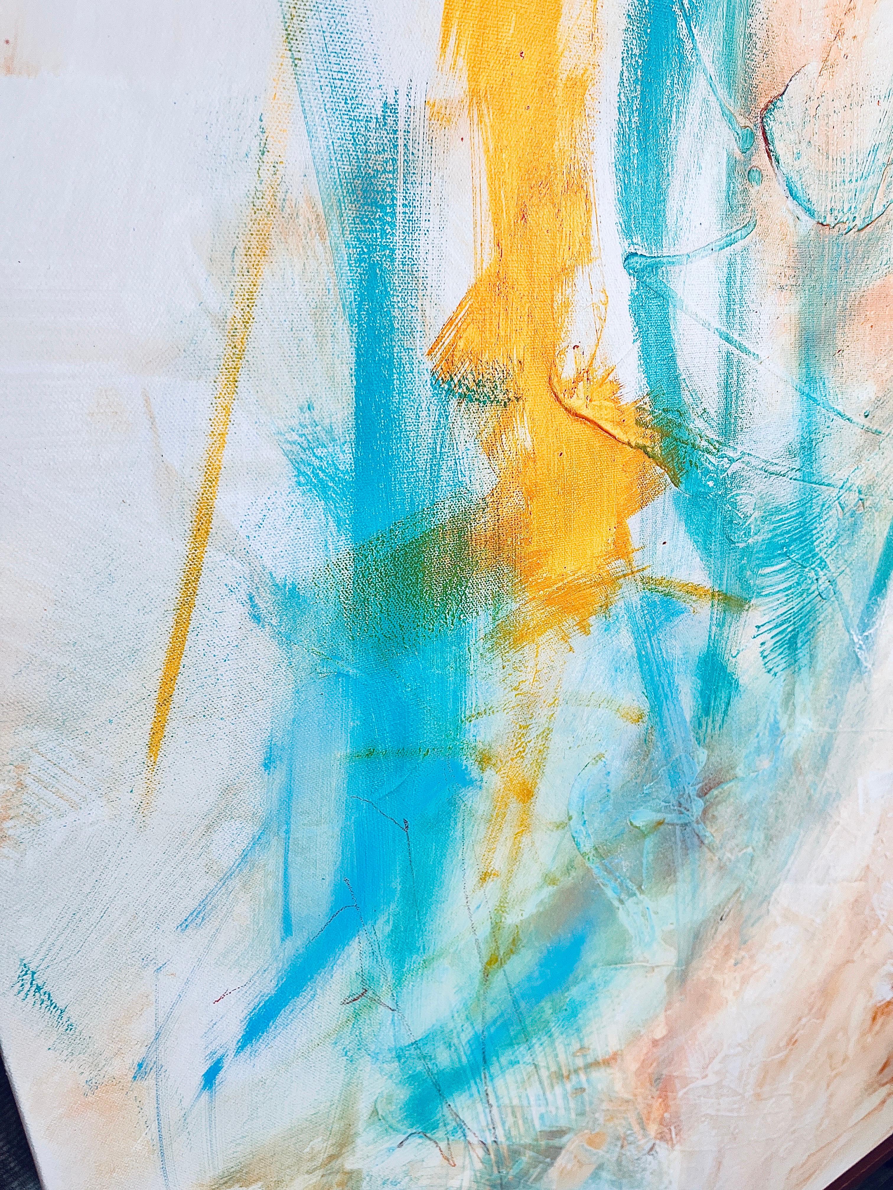 Authentic Desires/8 - Abstrakte Acrylmalerei in Türkis, Beige Weiß Dynami