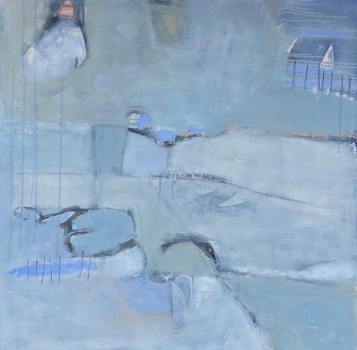 Eine monochromatische, abstrakte Landschaft, die an ländliche, mit Häusern übersäte Felder denken lässt. Die Künstlerin Pat Forbes erklärt: "Die Tagt...