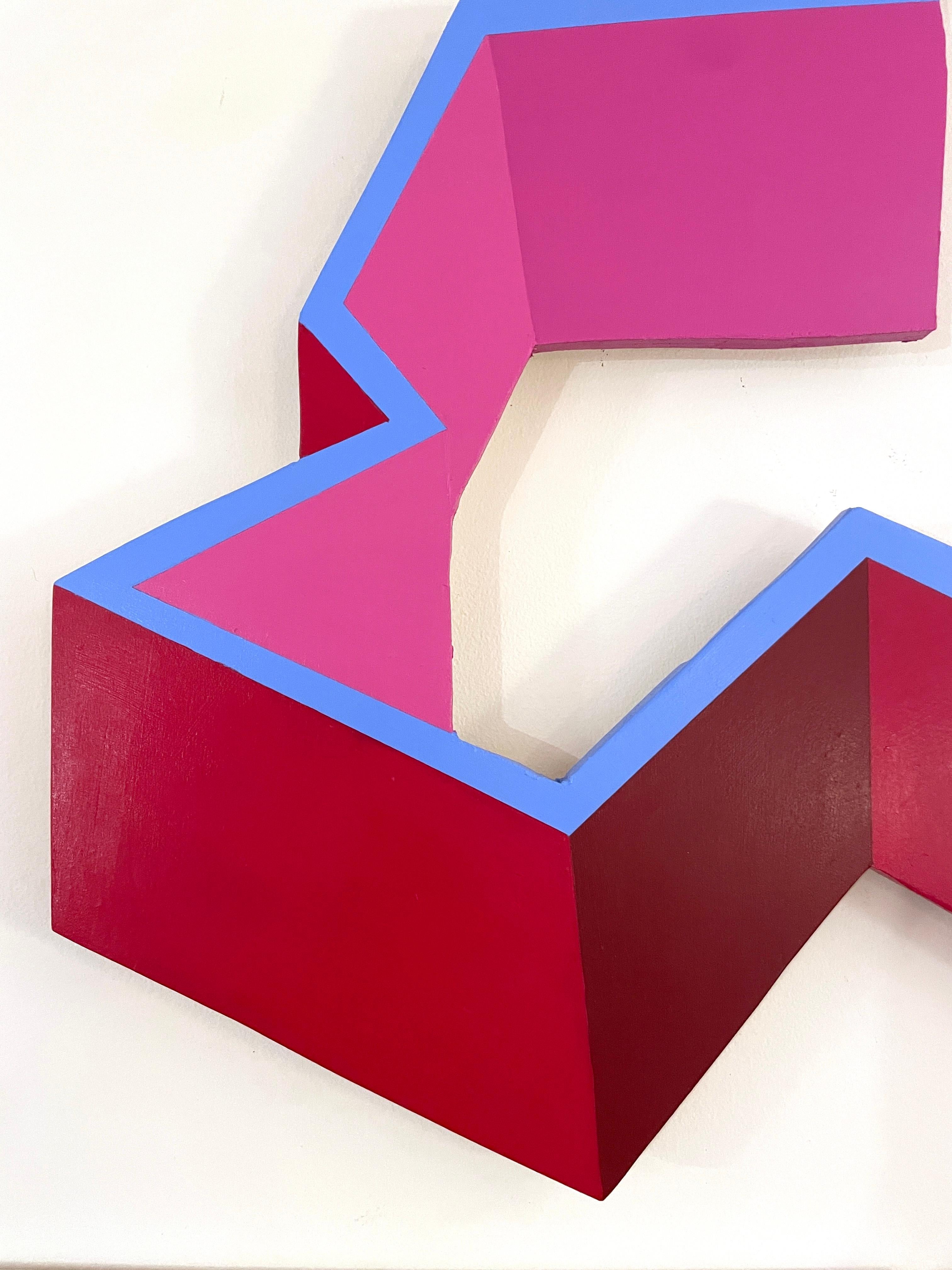 VM FiskPink Punk: large abstract geometric wall sculpture painting on shaped wood panel2024