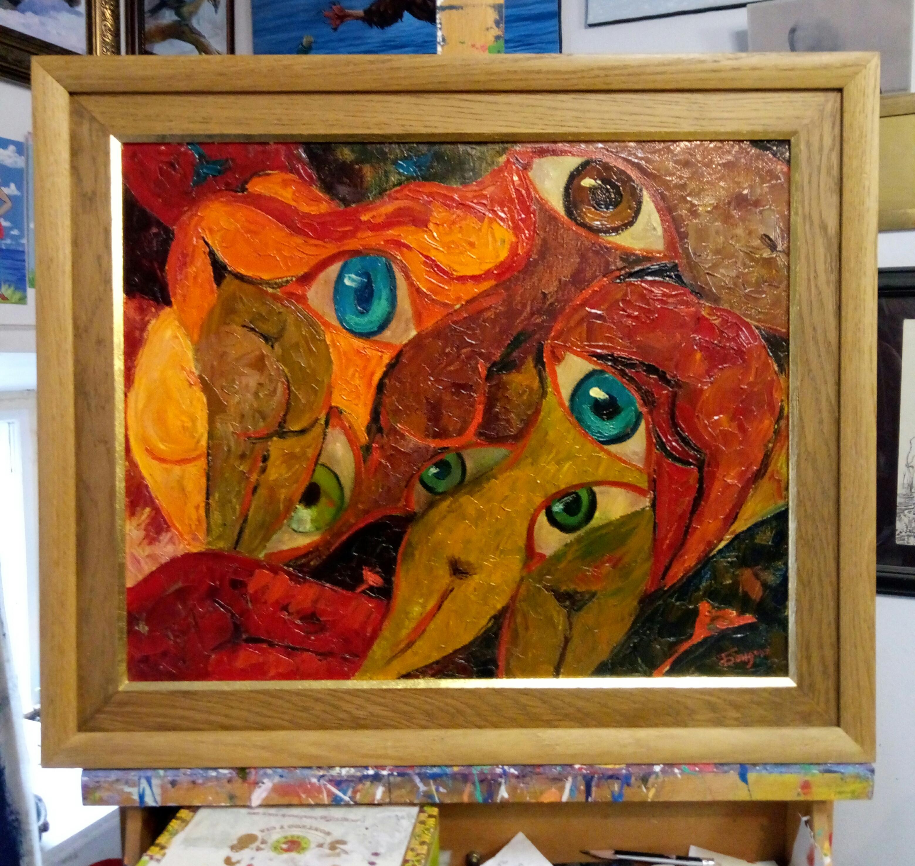 AM Contemporary . Großes Format. Vertikal . Öl auf Leinwand. "Nude.Sisters"