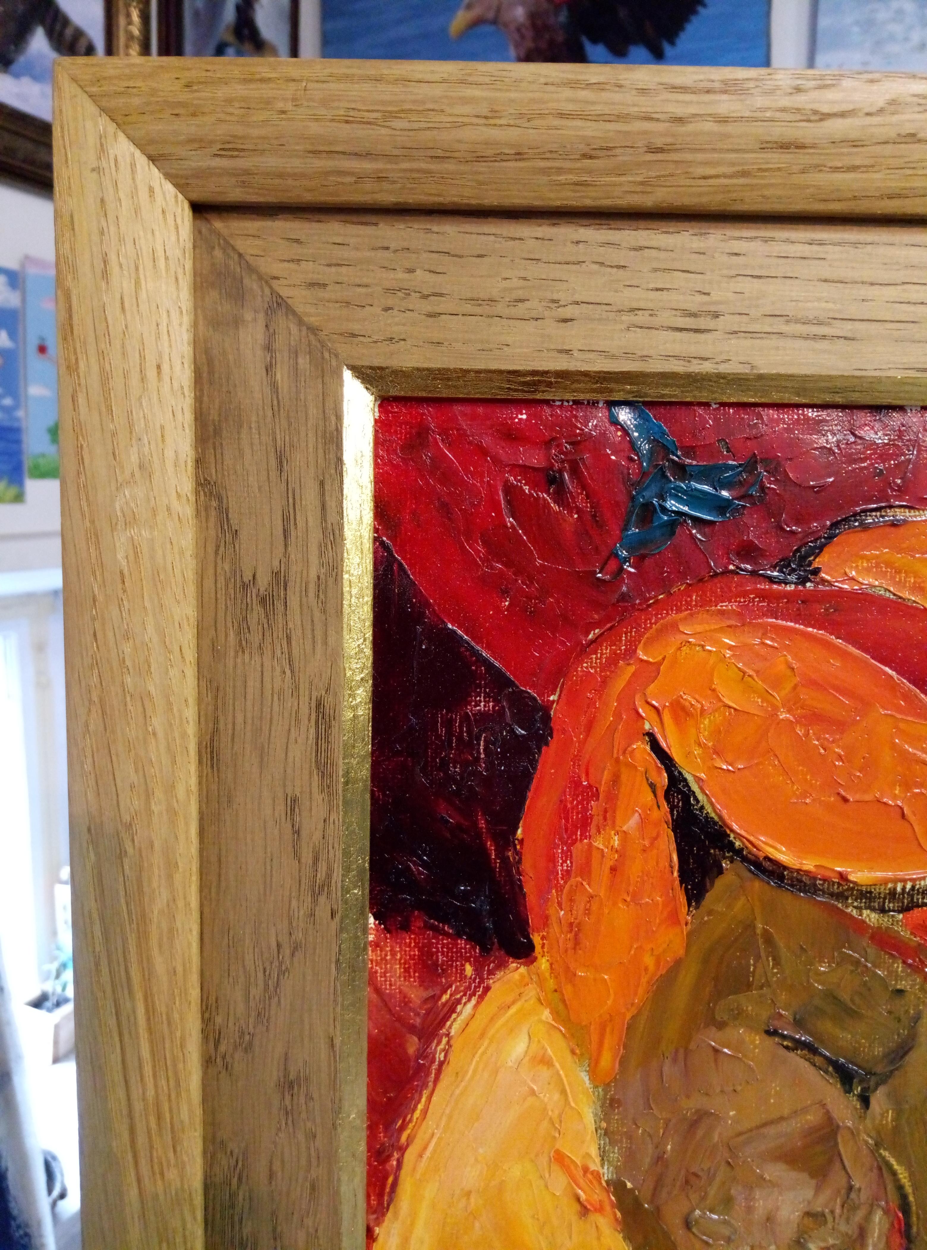 Schöne Gemälde für Innenräume. Das Gemälde ist in einem Eichenholzrahmen gerahmt, die Leinwand ist auf MDF aufgespannt.