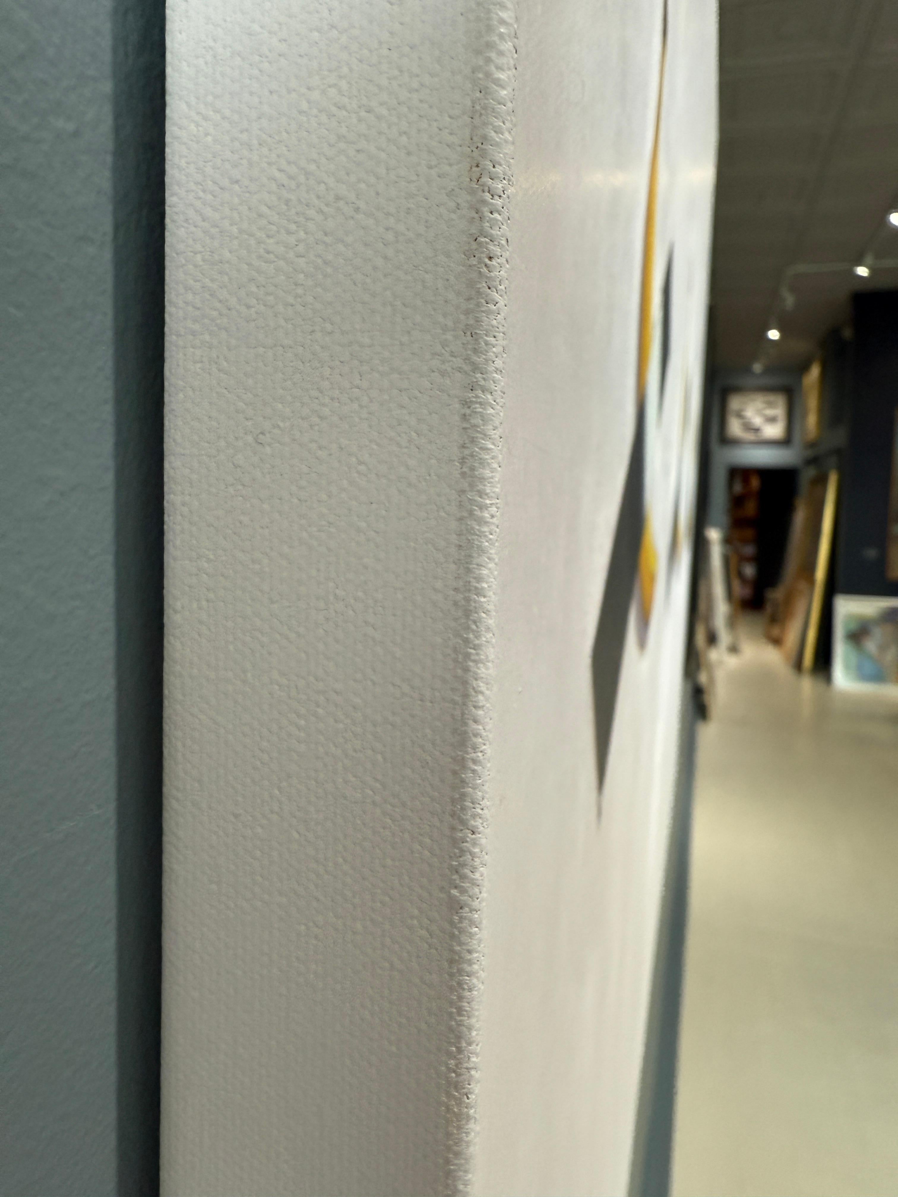 Verso auf der Keilrahmenleiste mit schwarzem Marker signiert (siehe Abbildung)