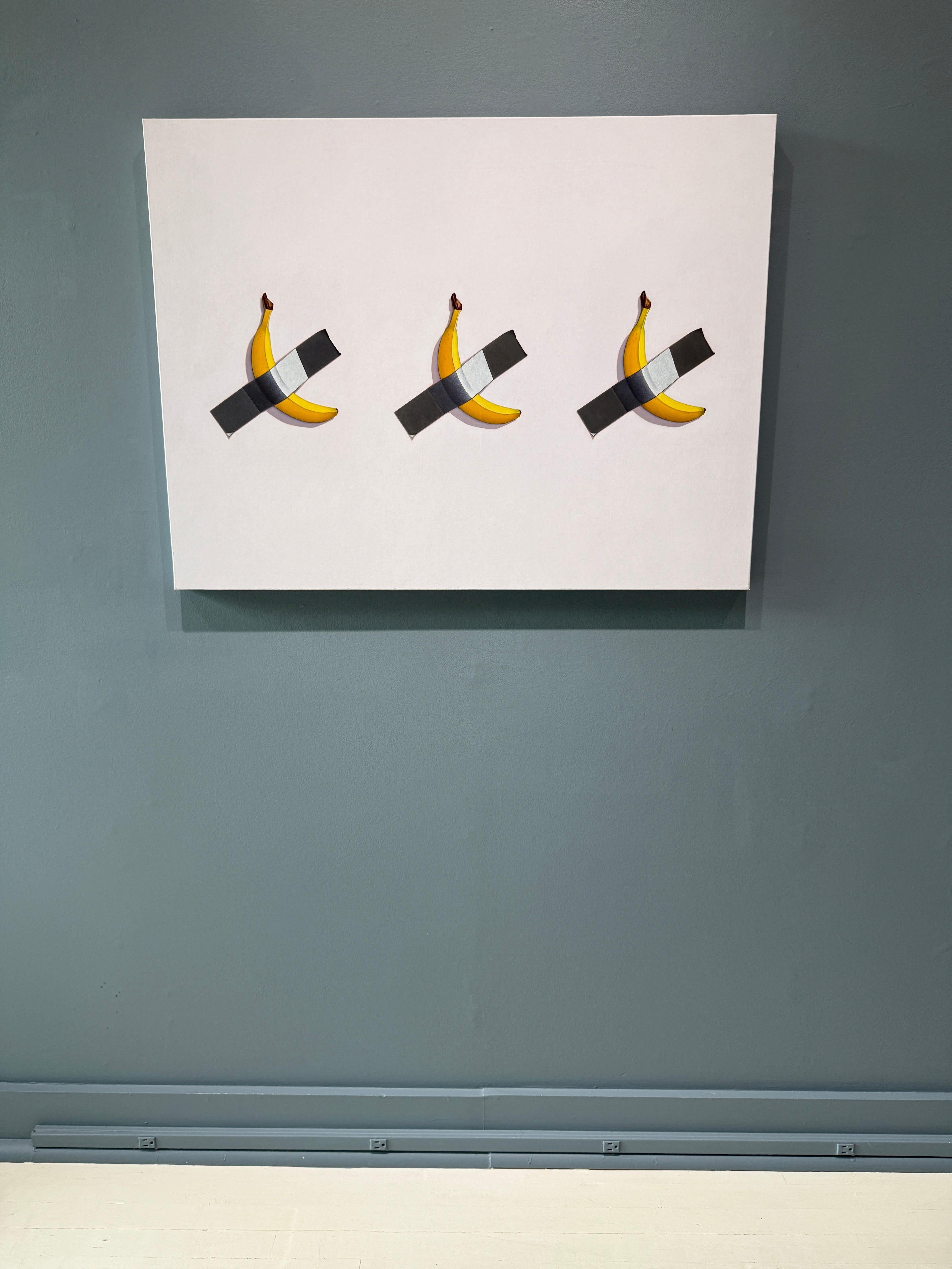 Objekte ähnlich wie "Monokultur" hyperrealistisches Ölgemälde von Maurizio Cattelans Bananen