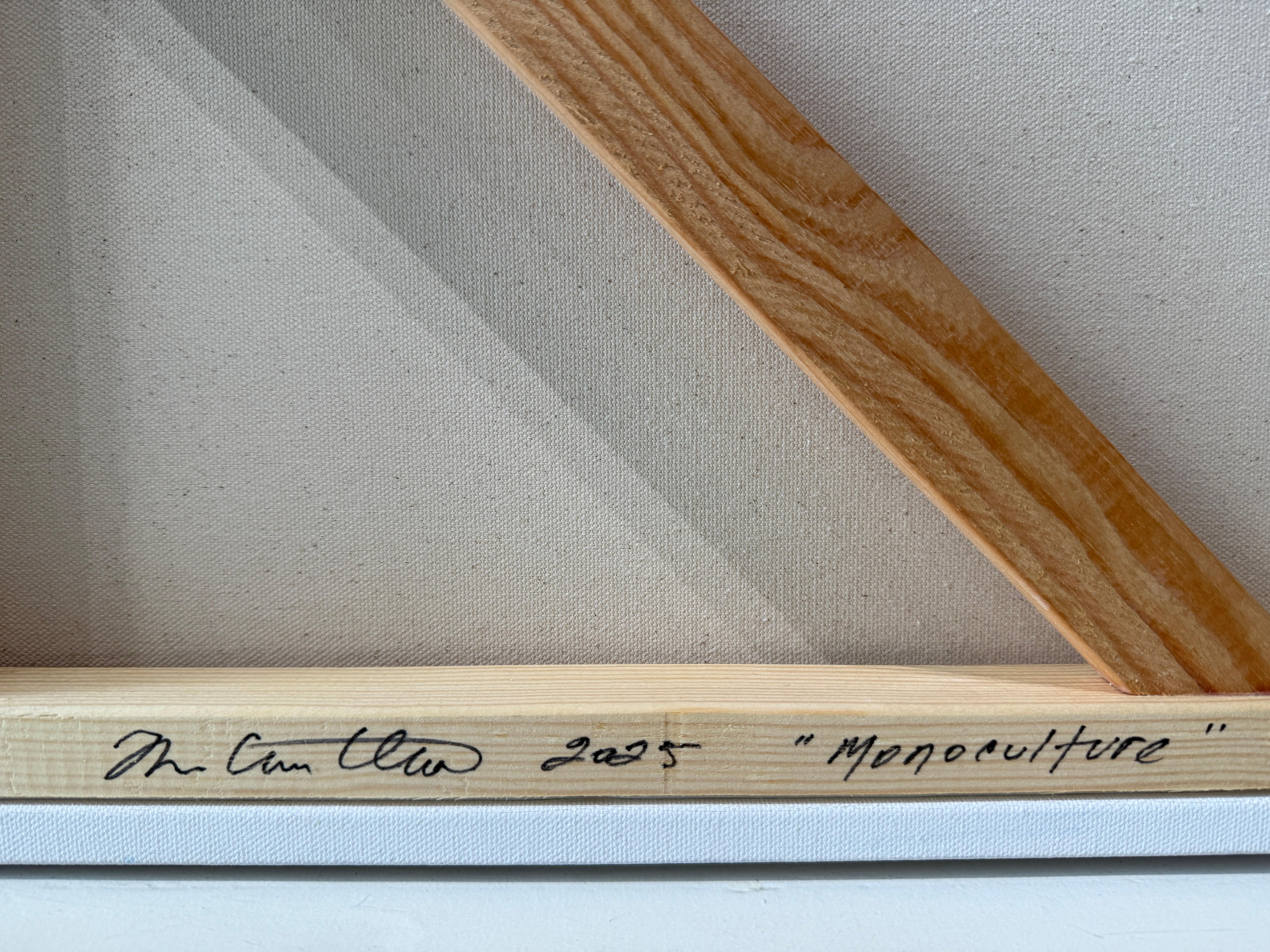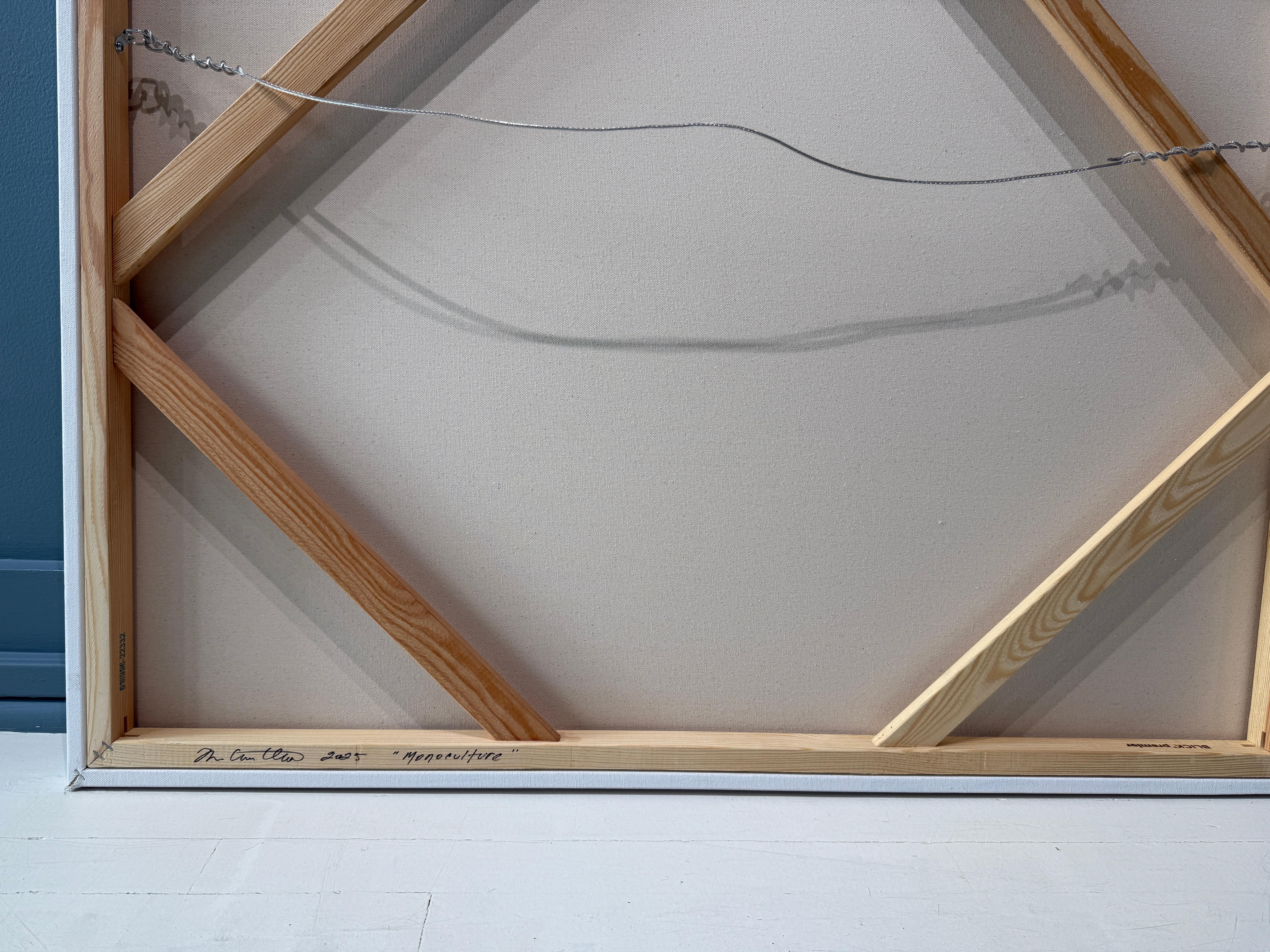Monokultur ist ein Statement zu Individualität, Absurdität und breiter Akzeptanz. Dieses Gemälde ist humorvoll, provoziert aber auch und ist sicherlich ein Gesprächsanlass.