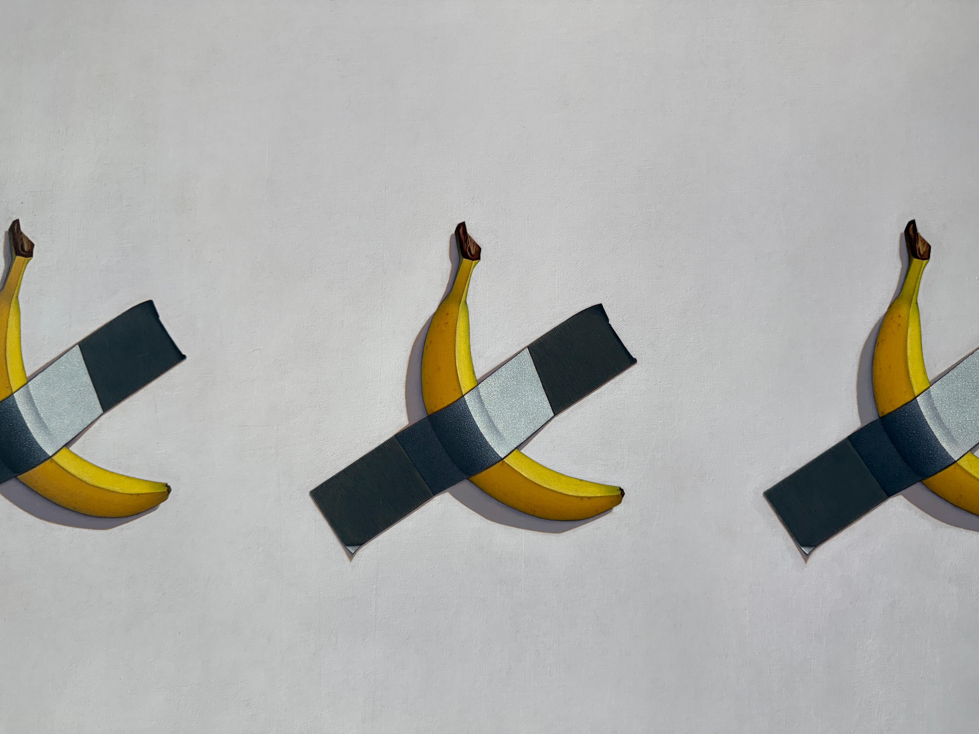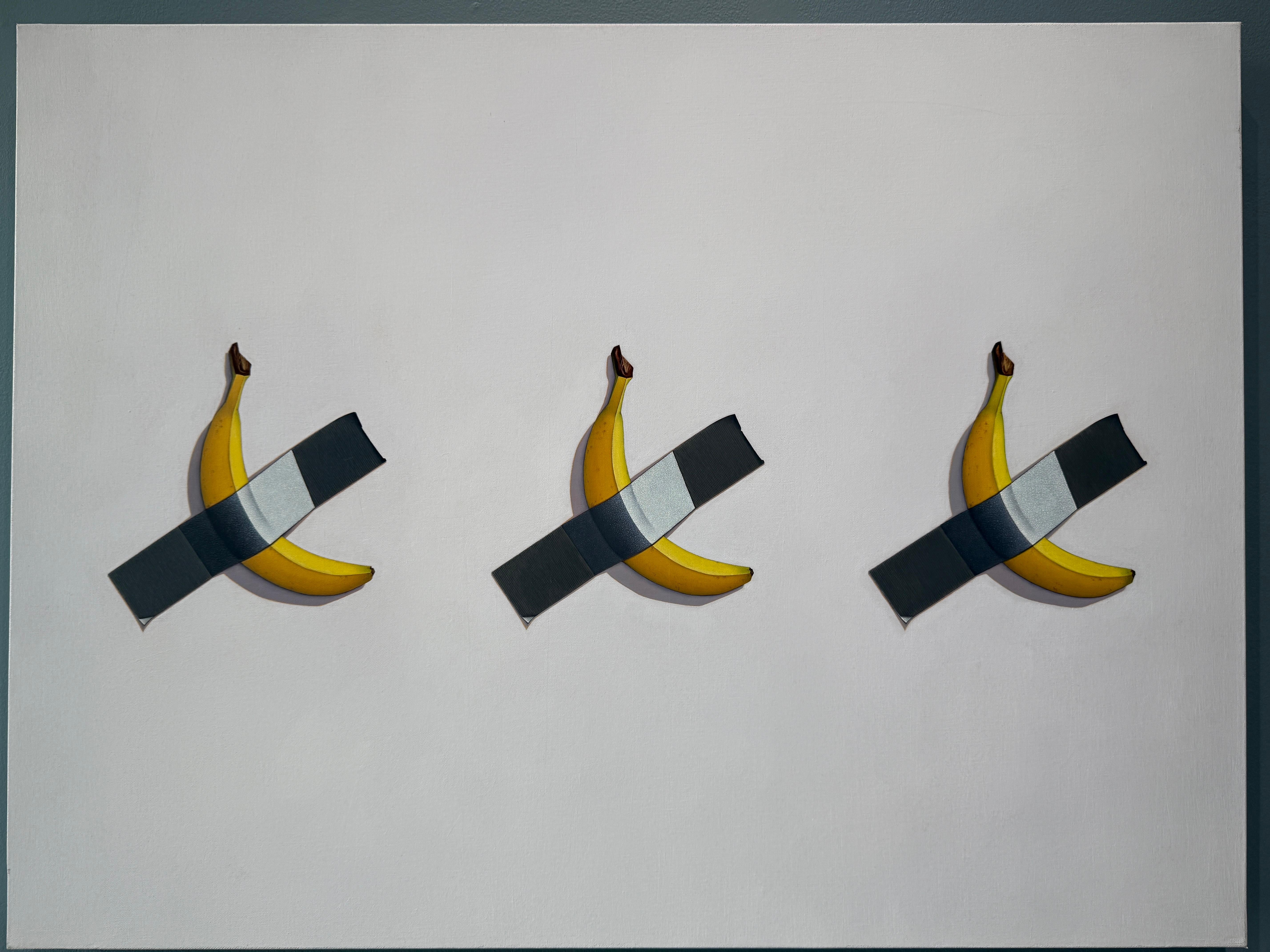Anthony Mastromatteo"Monokultur" hyperrealistisches Ölgemälde von Maurizio Cattelans Bananen2025