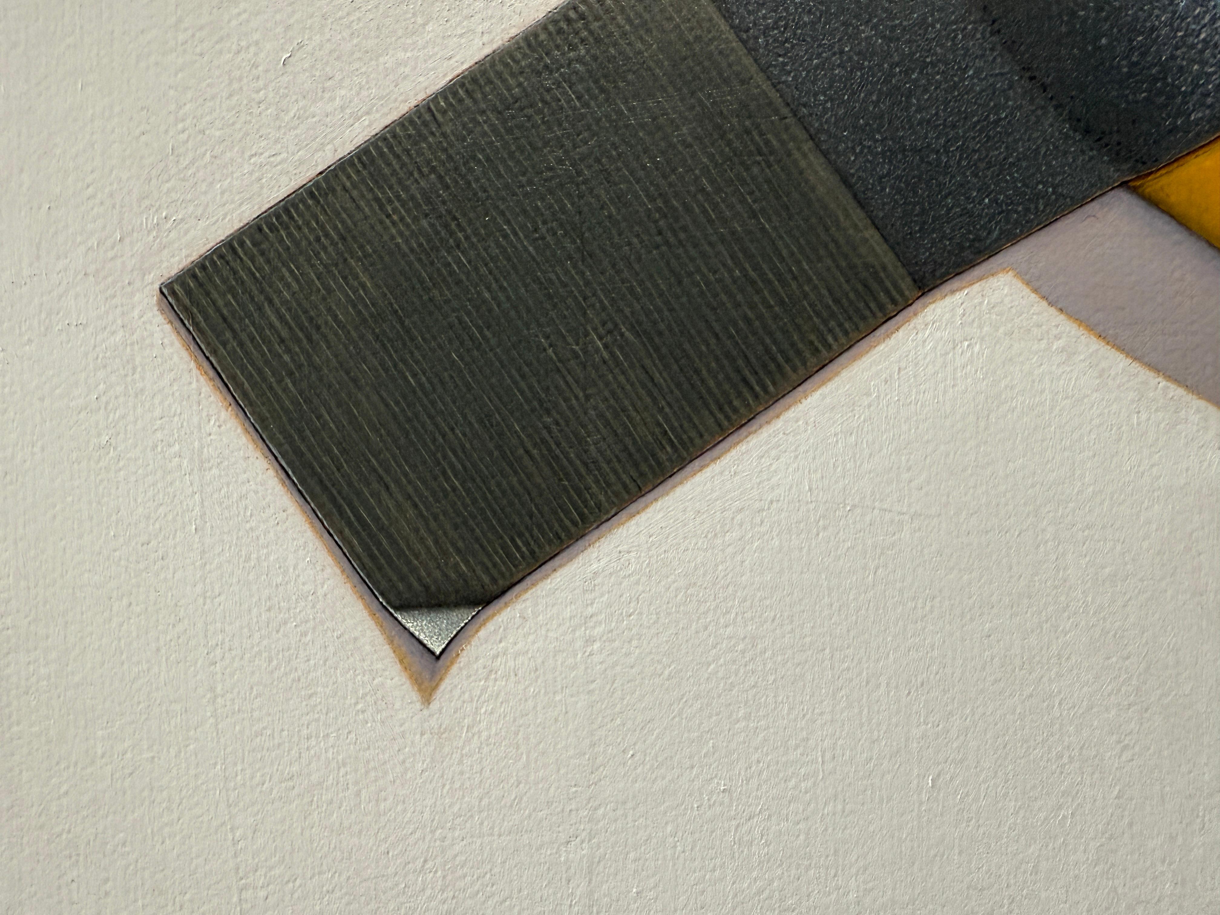 "Unzipping" hyperrealistisches Ölgemälde, Zähne des Reißverschlusses, minimalistisch, gerahmt
