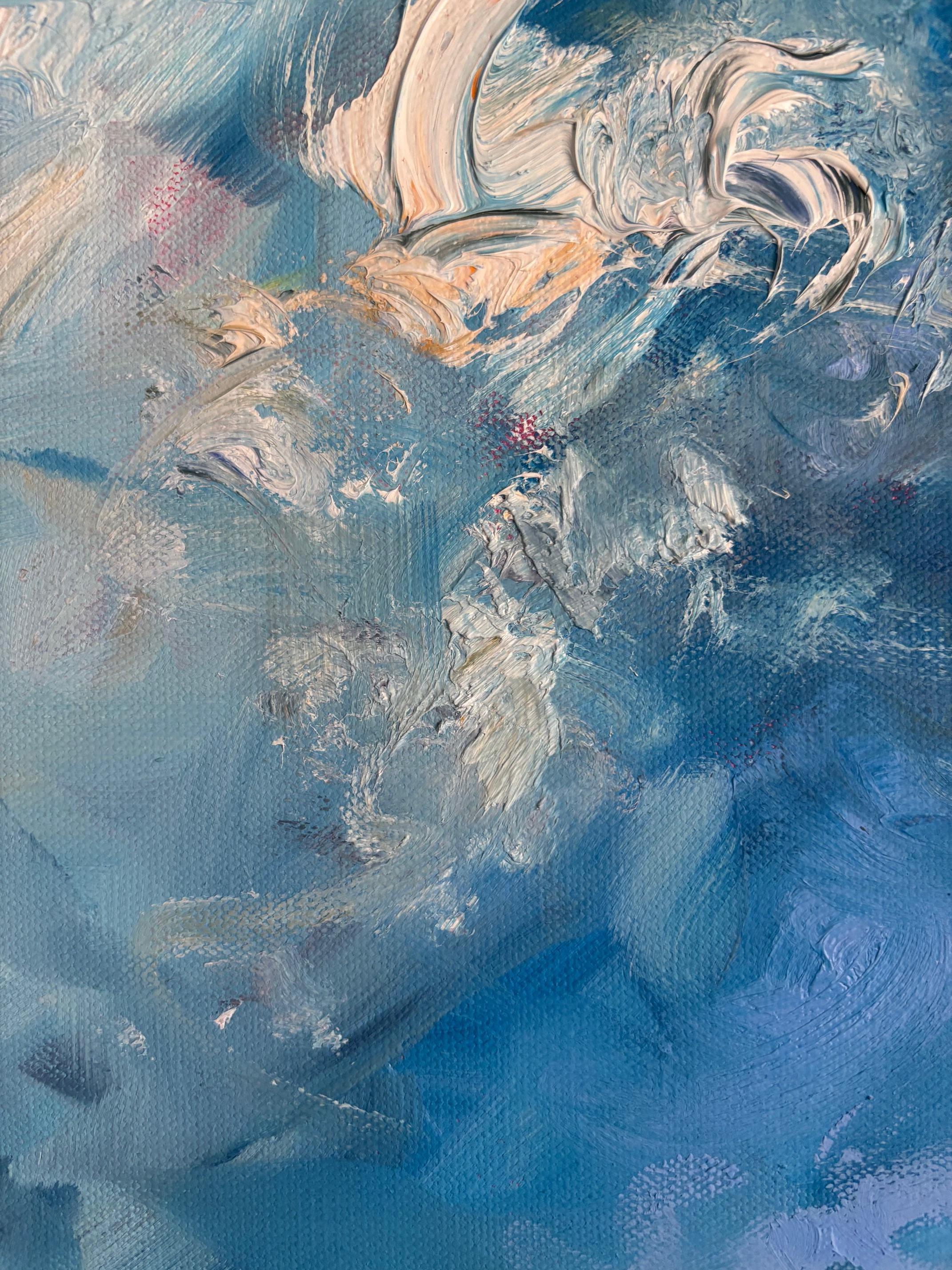 Zwei glückliche Wolken – Abstrakte Meereslandschaft, Acrylgemälde