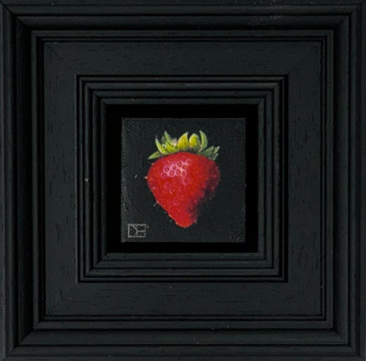 Pocket Very Very Red Apple ist ein Original-Ölgemälde von Dani Humberstone als Teil ihrer Pocket-Serie, die realistische Ölgemälde in kleinem Maßstab mit einer Anspielung auf die barocke Stilllebenmalerei umfasst. Die Gemälde sind in einen schwarzen Holzschichtrahmen eingefasst.