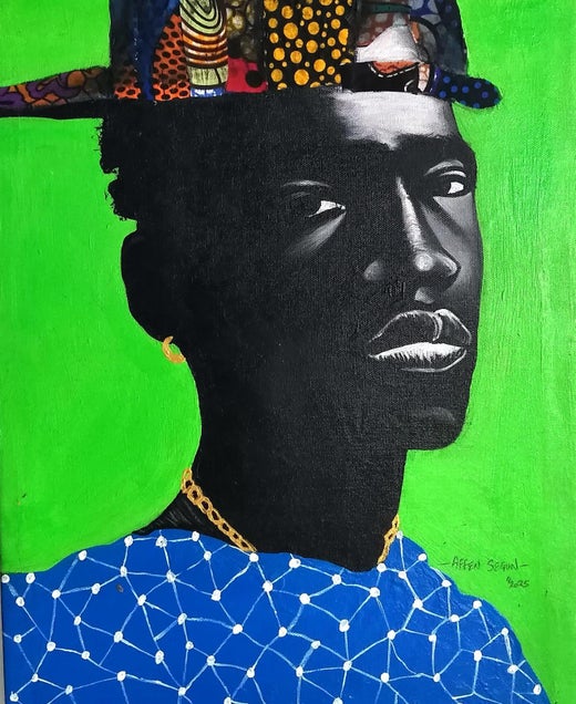 Affen Segun wurde 1993 in Lagos, Nigeria, geboren. Der aus dem Bundesstaat Bayelsa stammende Künstler entdeckte schon in jungen Jahren seine Liebe zur Kunst und ließ sich später in einer Kunstwerkstatt am Straßenrand einschreiben, um seine Fähigkeiten zu verbessern. Affen ist ein zeitgenössischer Künstler, der von der schwarzen Kultur motiviert ist und die schwarze Kultur, seine Kultur, als Inspirationsquelle für seine Kunst sieht. Seine Leidenschaft für die Schaffung von Porträts, die durch die Verwendung von Acrylfarben und afrikanisch gemusterten Stoffen zum Leben erweckt werden, und seine Fähigkeit, Emotionen im Gesicht seiner Musen einzufangen, hat ein großes Publikum für seine Werke angezogen. Affen hat Gemälde für mehrere nigerianische Berühmtheiten wie Mayorkun, Skiibii, Zlatan, Davido, Wizkid und andere geschaffen. Affen ist ein aufstrebender Künstler, der für sein Talent international anerkannt und ausgezeichnet wurde. Seine Arbeiten sind in Online- und Einzelhandelsgalerien sowie in Privatsammlungen in Großbritannien, Nigeria, den Vereinigten Staaten, den Philippinen, Frankreich und anderen Ländern zu sehen.